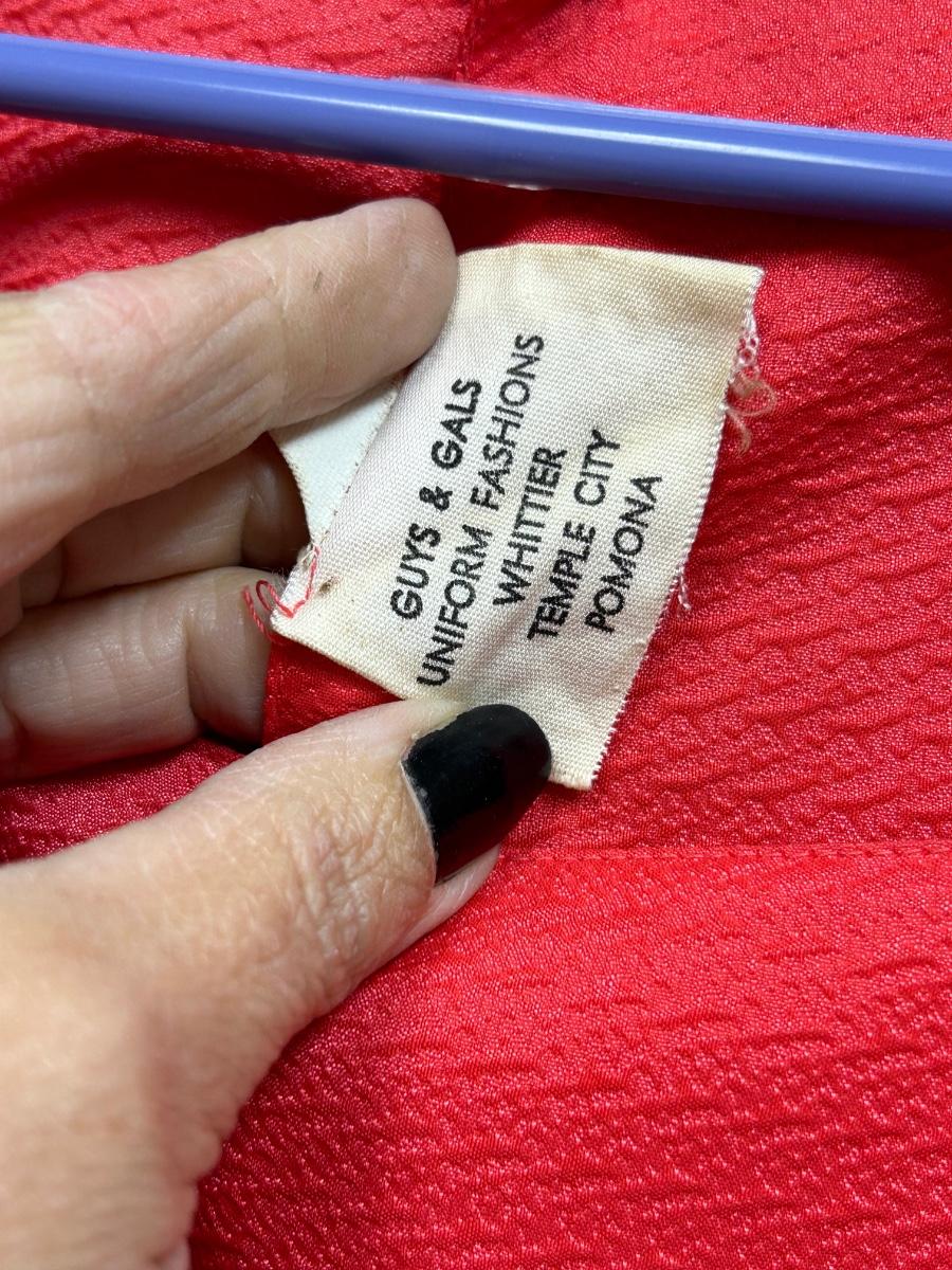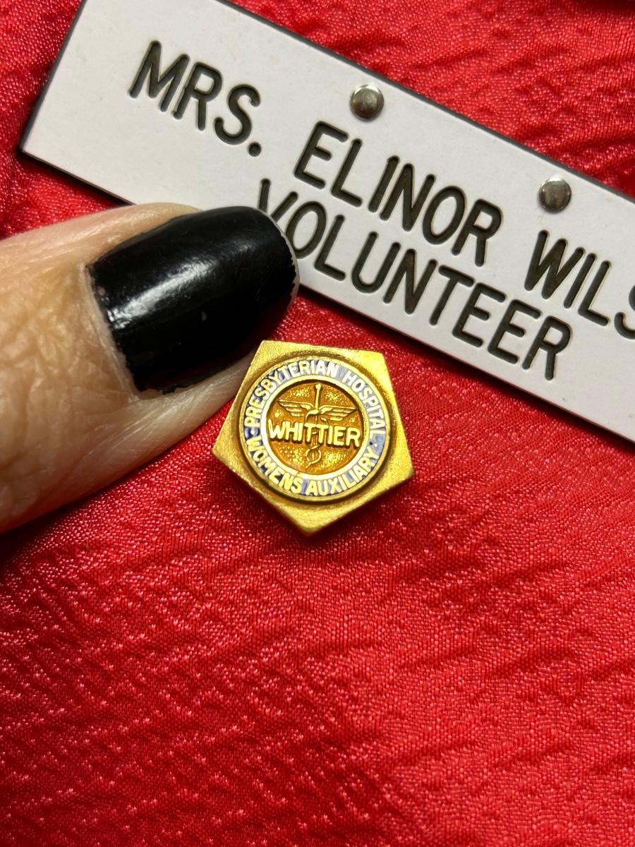 Vintage Candy Stripper Hospital Volunteer Smock Apron Dress with Badge Pin And Patch. In wonderful vintage condition. Volunteer for Whittier Presbyterian Hospital. No holes or stains noticed.