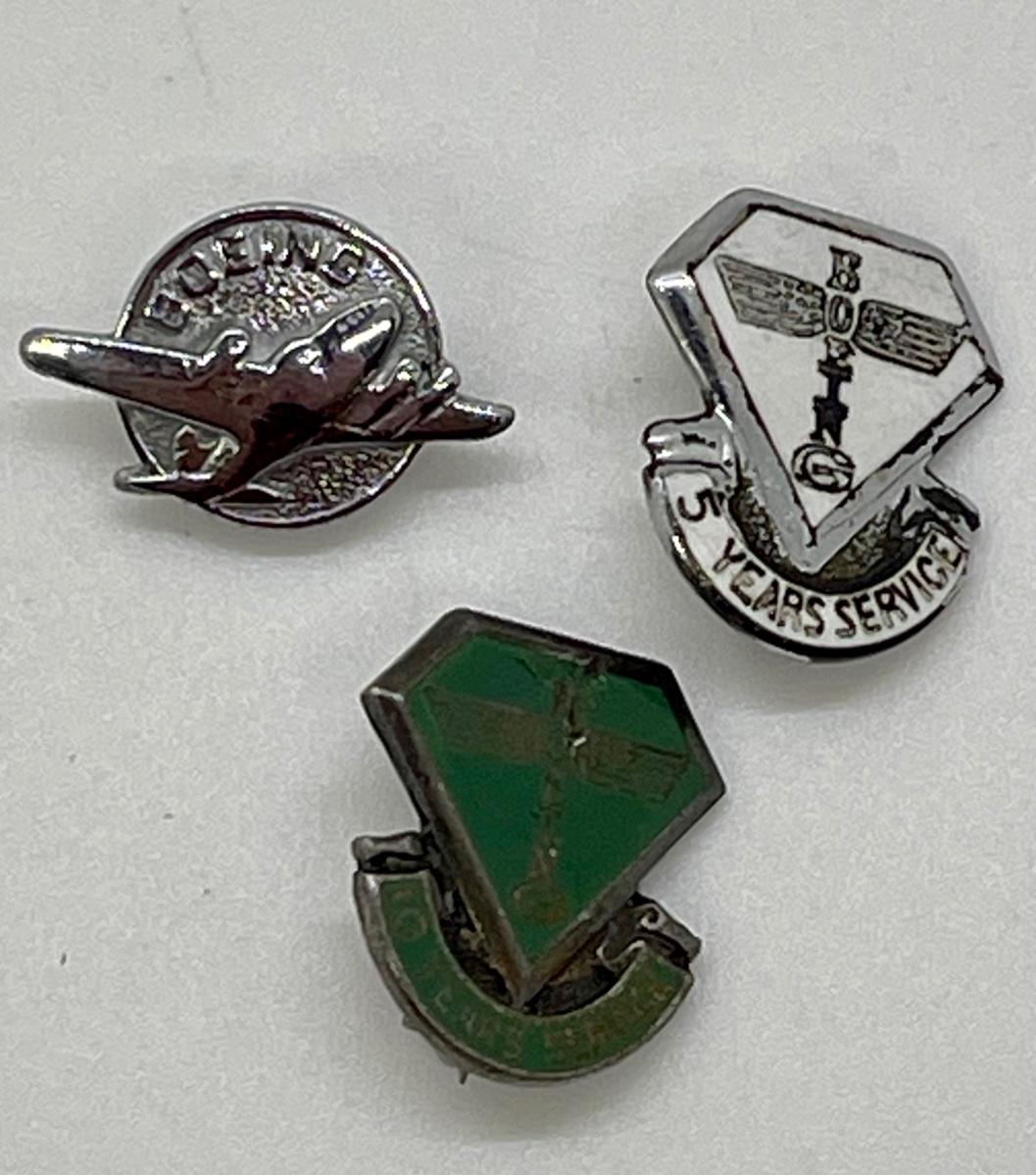 Lot of Three Aerospace Pins Boeing Service Award Lapel Pins 5- & 10-year Sterling