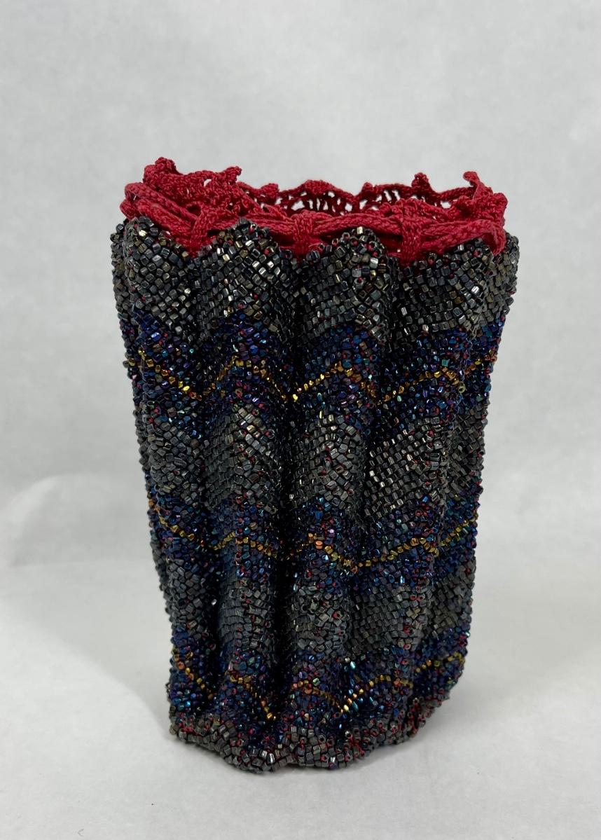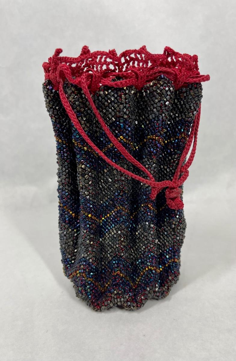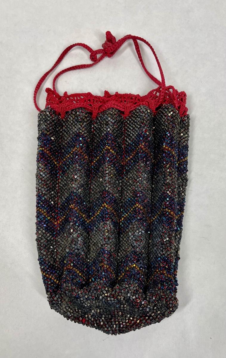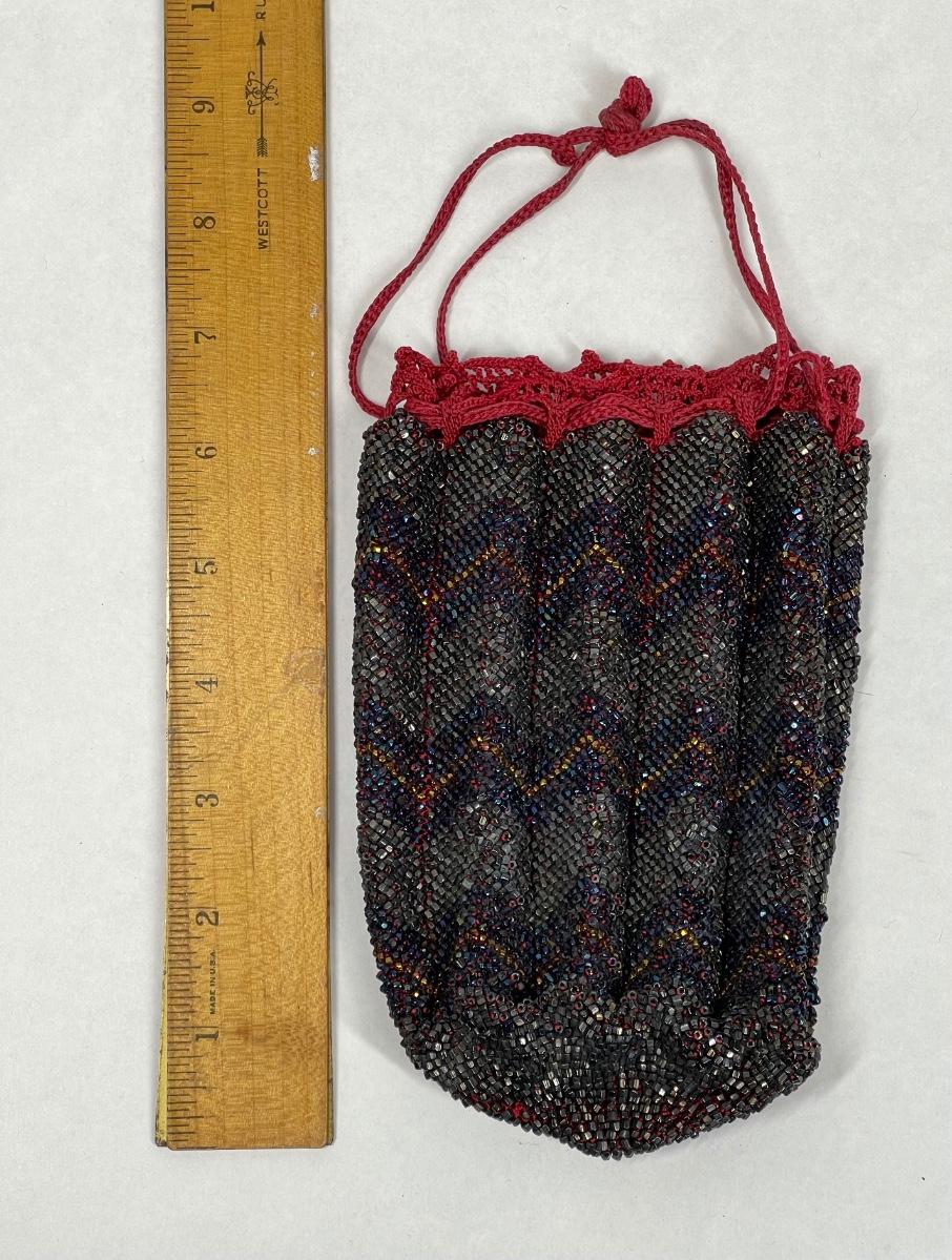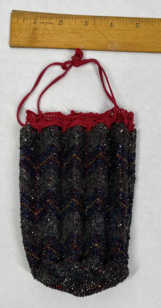 Antique Evening Purse Pouch-style Draw-string Sack Iridescent Glass Bead Beaded
