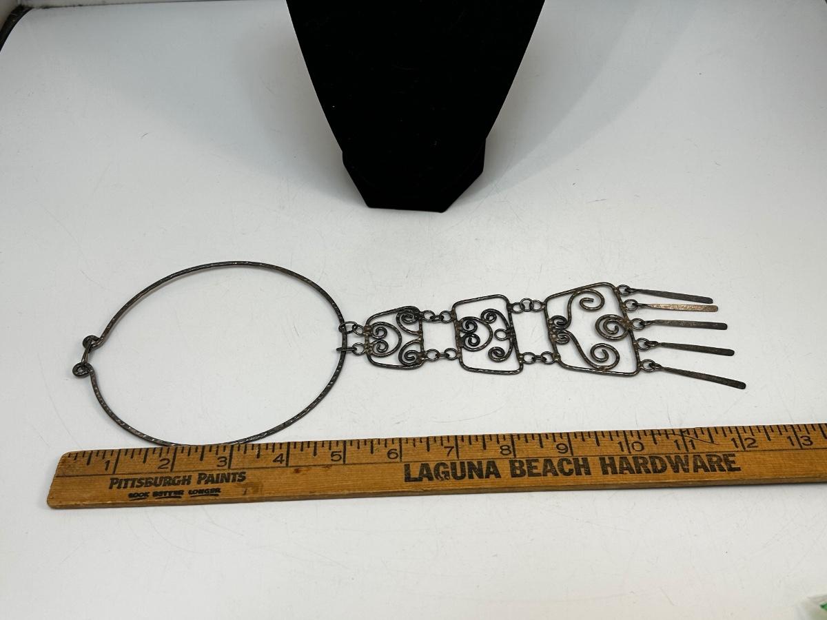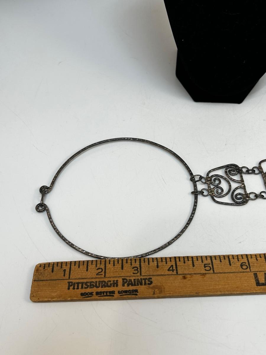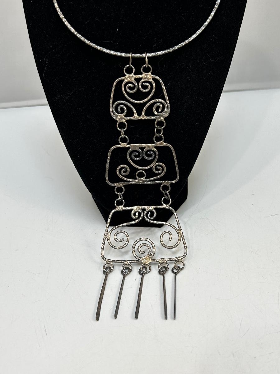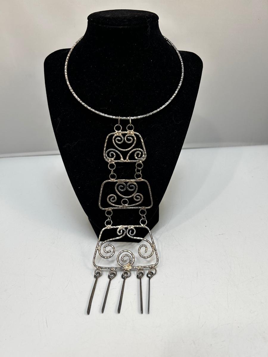 Retro Silver Tone Metal Abstract Choker with Long Articulated Pendant. In good condition.