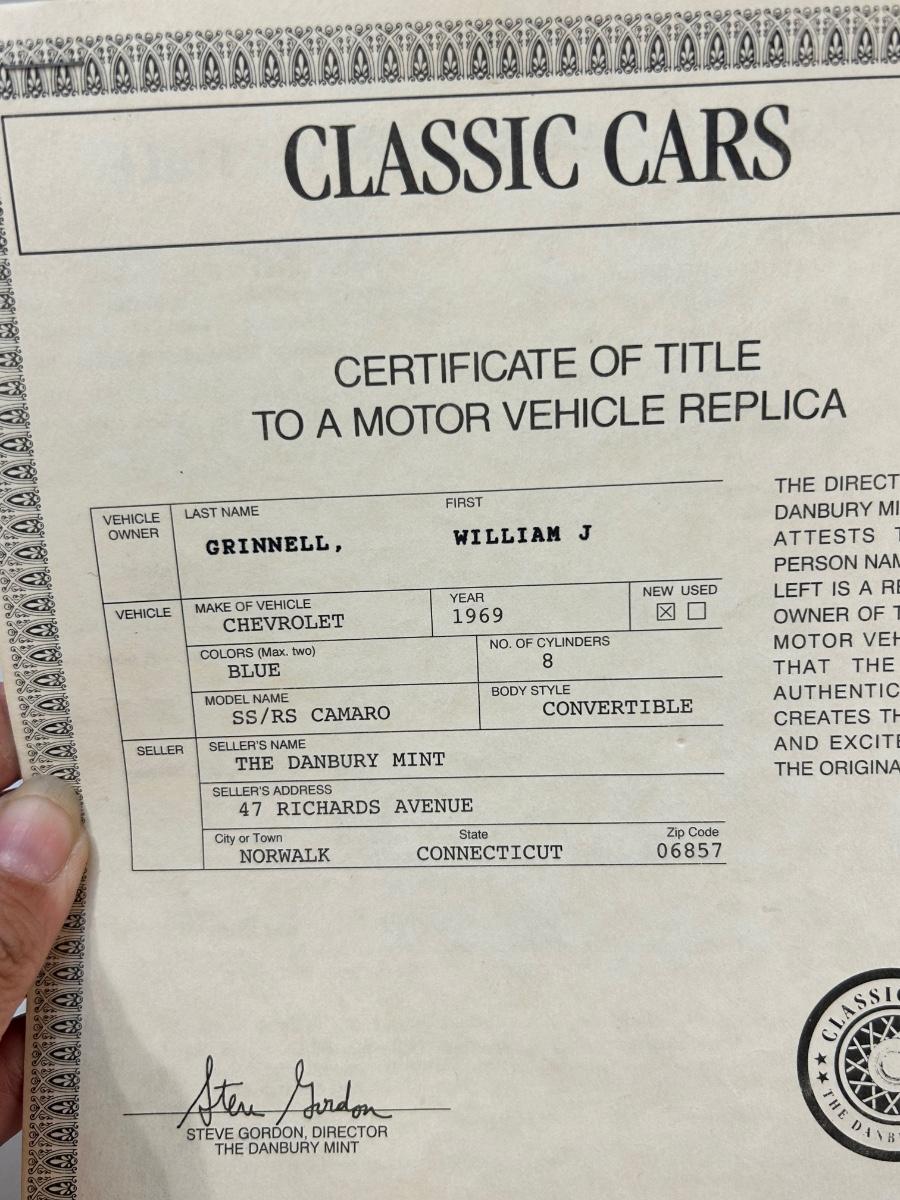 Danbury Mint 1959 Blue Chevrolet SS/RS Camero Convertible Premium Die Cast Scale Model Car