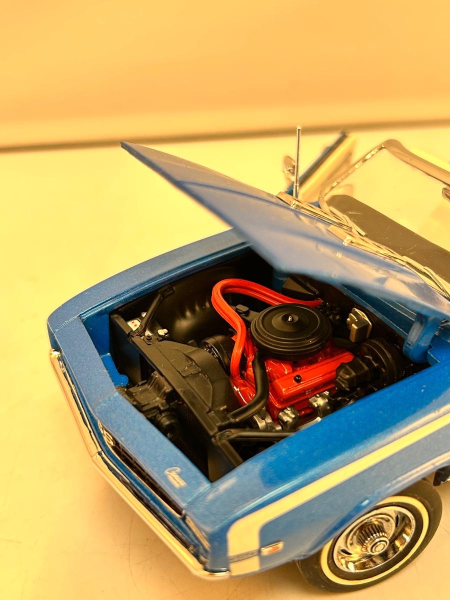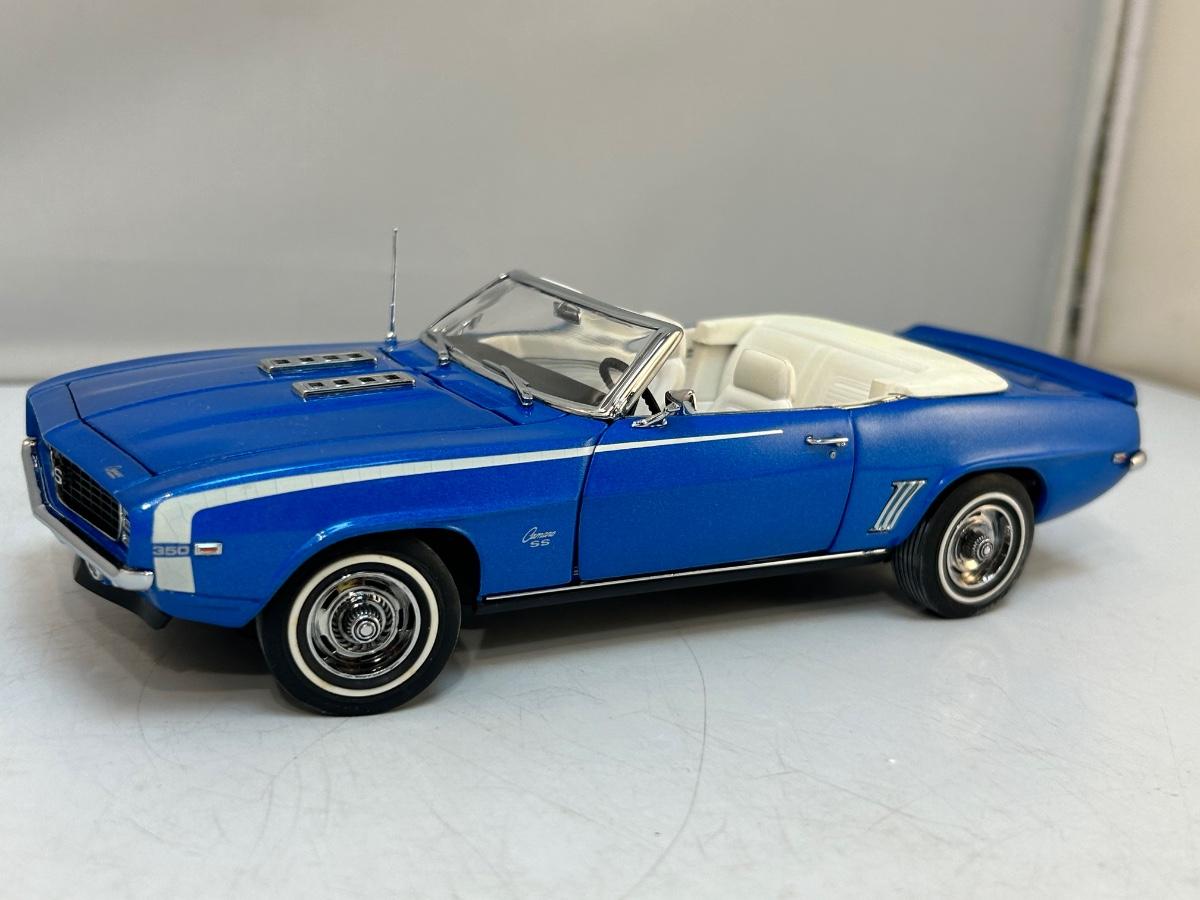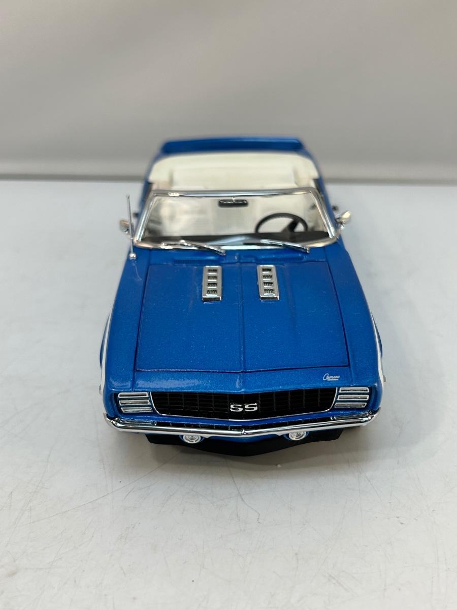 Danbury Mint 1959 Blue Chevrolet SS/RS Camero Convertible Premium Die Cast Scale Model Car. In good condition. Doors and hood open, no damage noticed. Displays well.