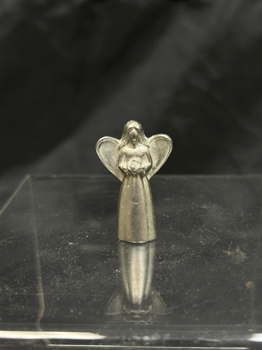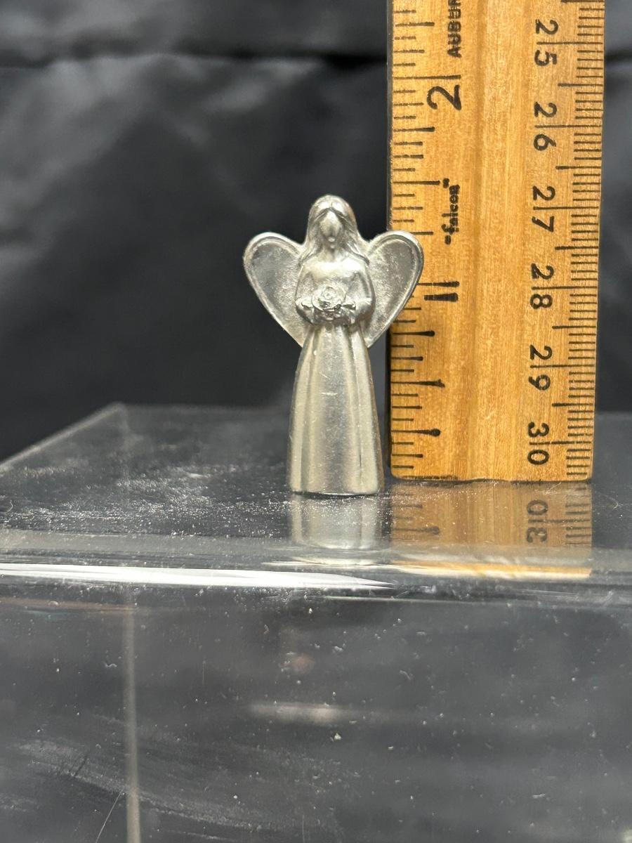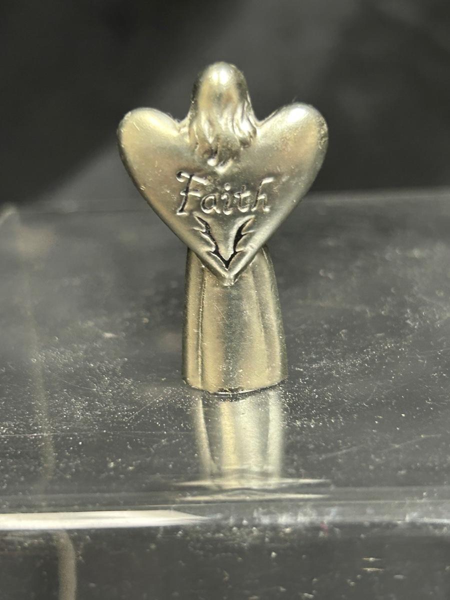 Miniature Cast Metal Faith Guardian Angel Figurine. Only 1.5" size. Has the word Faith across the wings on the back.