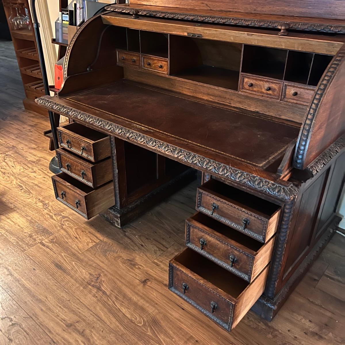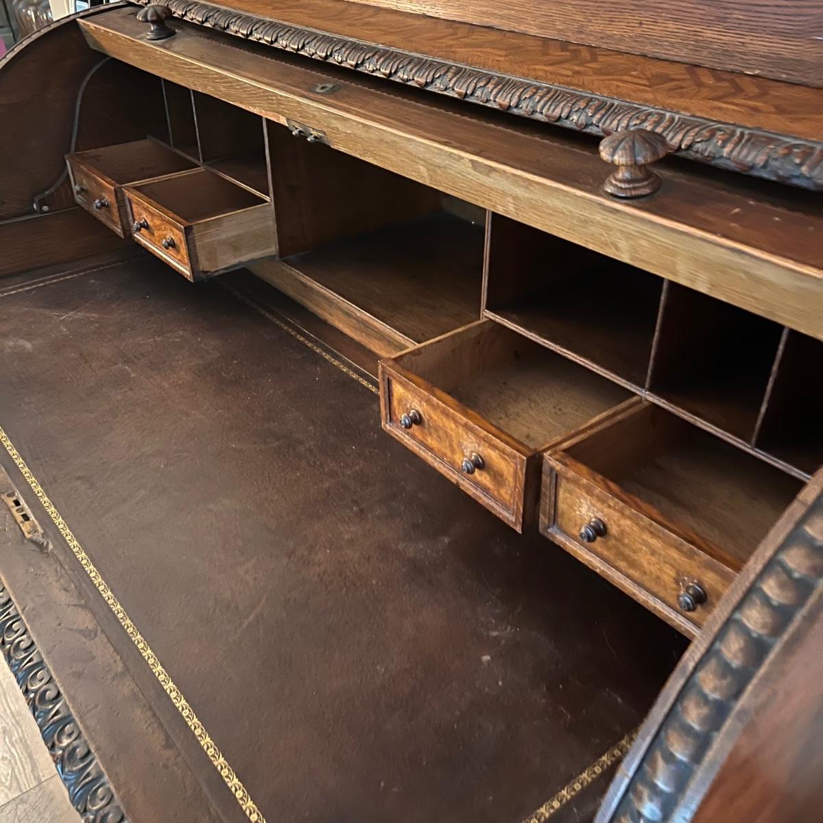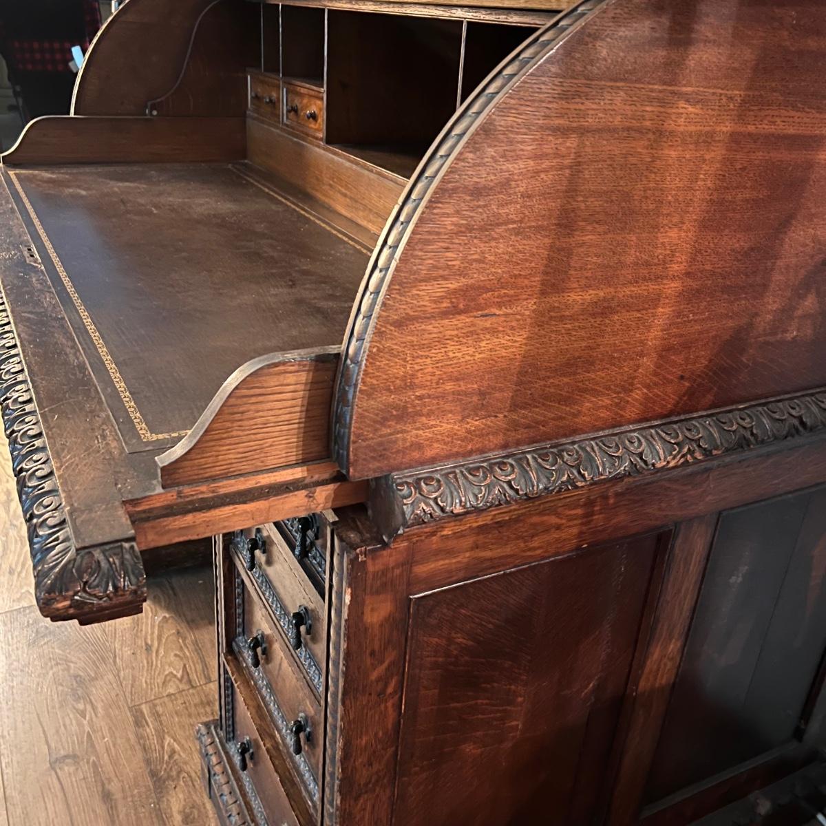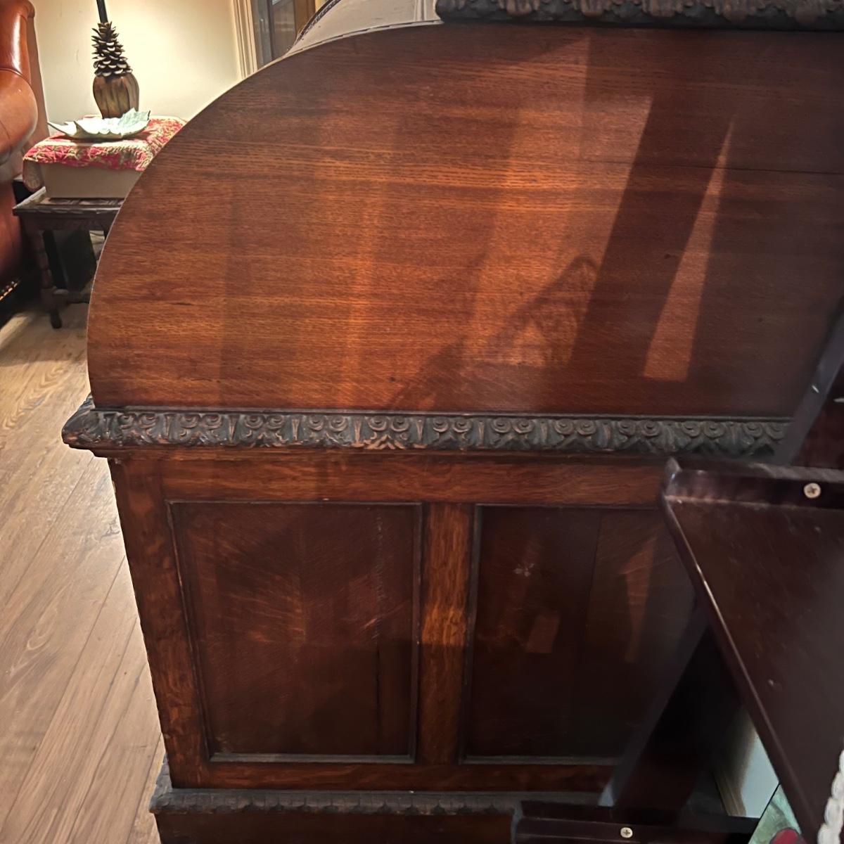 Large Exquisitely Carved Roll Top Desk Imported From Scotland (LR-RG)
