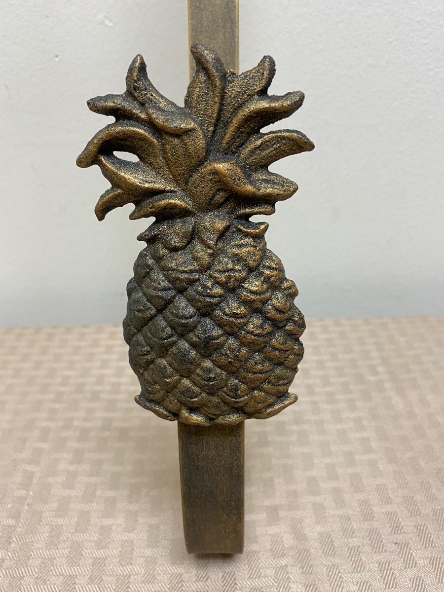 Pineapple Adorn Metal Over the Door Wreath Holder Hook. Good size, heavy duty hook. Brass finish.