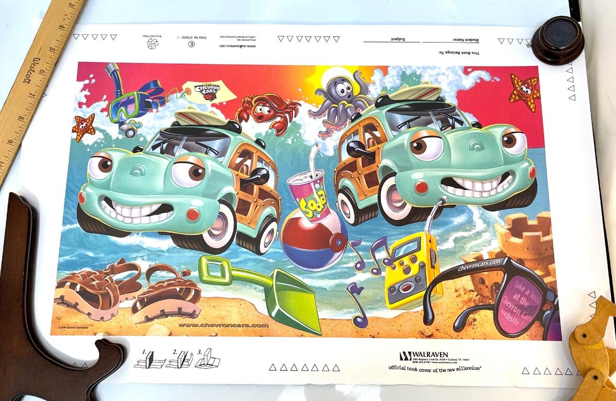 Collectible Chevron Cars Book Cover Unused. Could be framed. Has some light wear along edges.