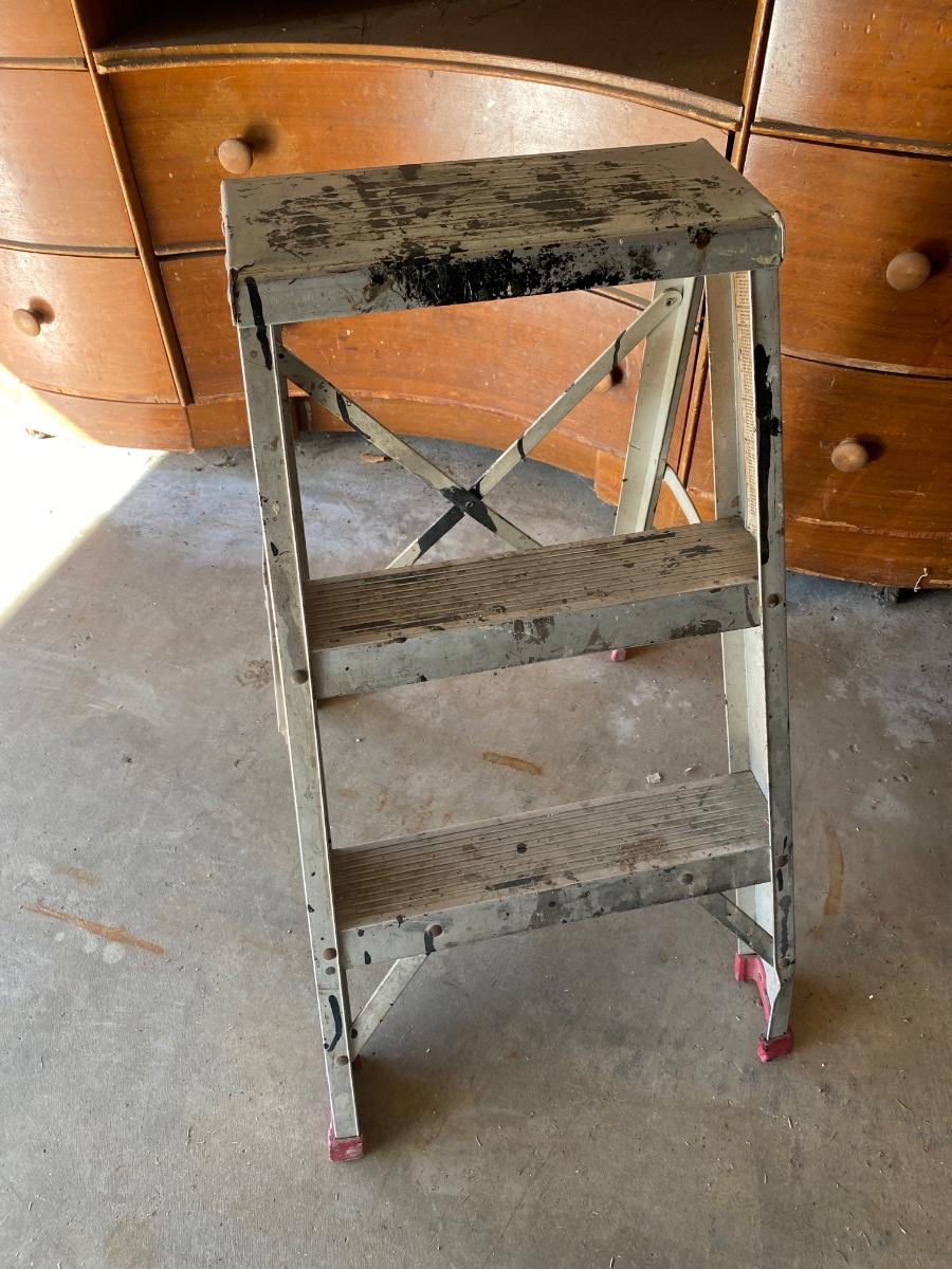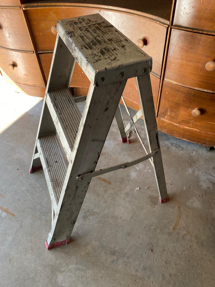 Three Step Aluminum Metal Step Ladder. Sturdy and lightweight.