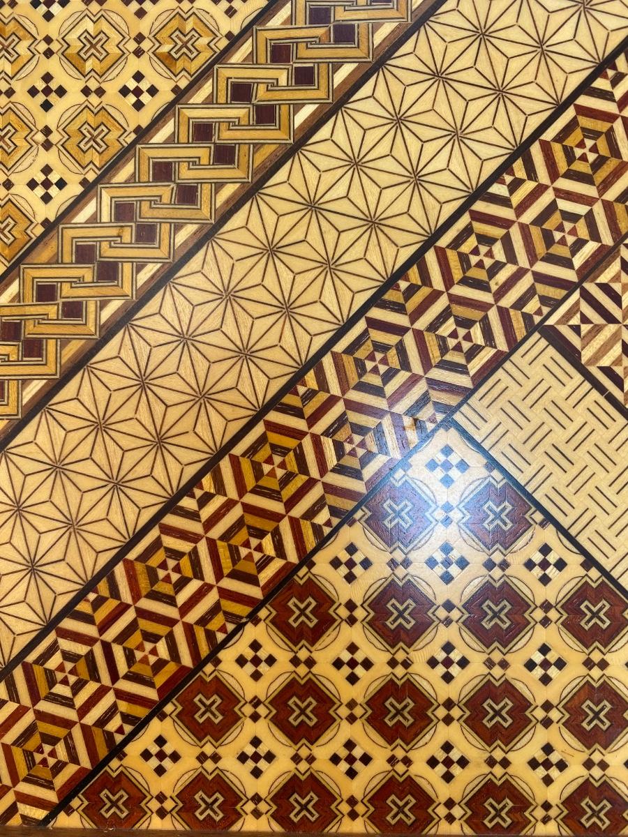 Vintage Ornate Mosaic Geometric Inlaid Wood Serving Tray Japan Yoseki Handicraft