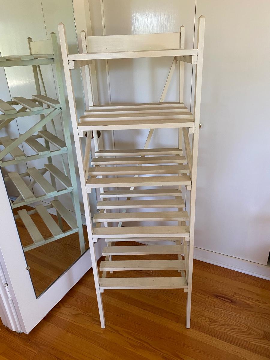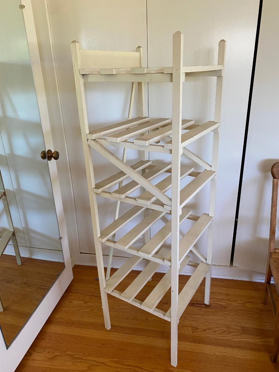 White Painted Wood Square Five Shelf Storage Bookcase. Good condition. About 5' tall.