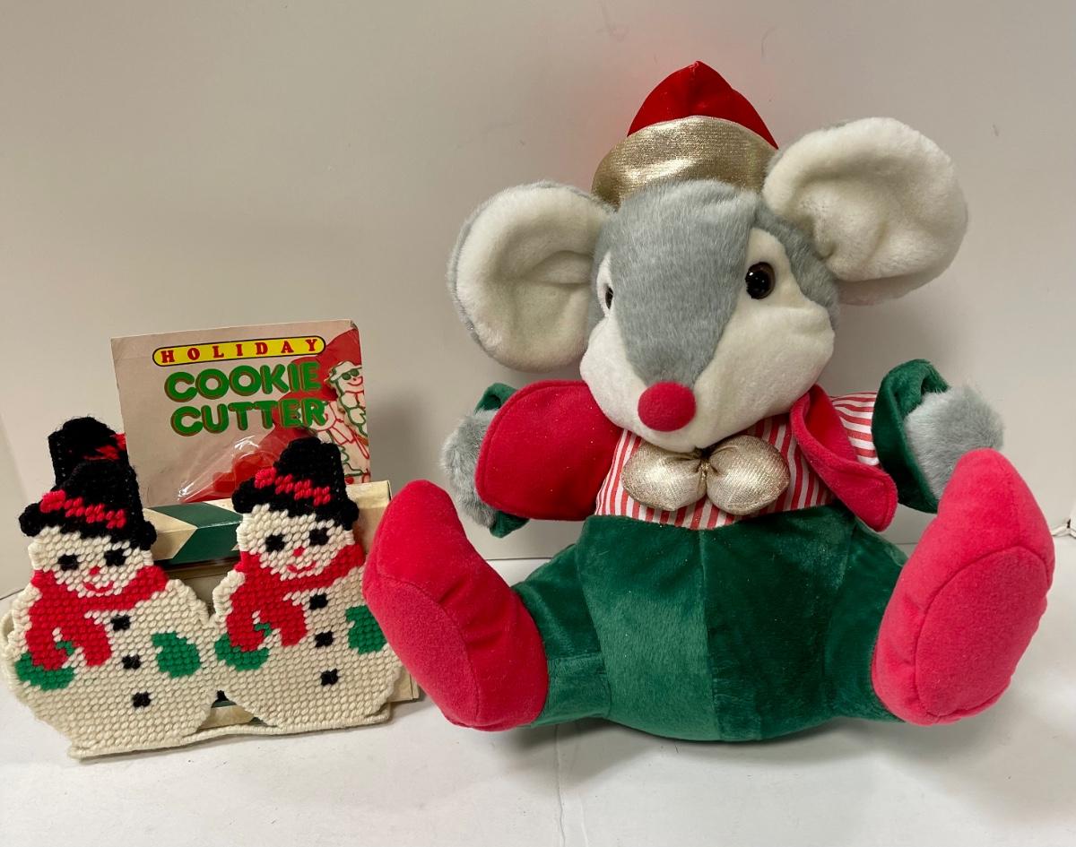 Retro Christmas Decor Plush Mouse Holiday Lot