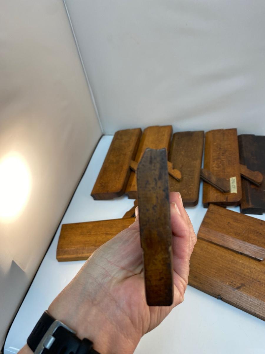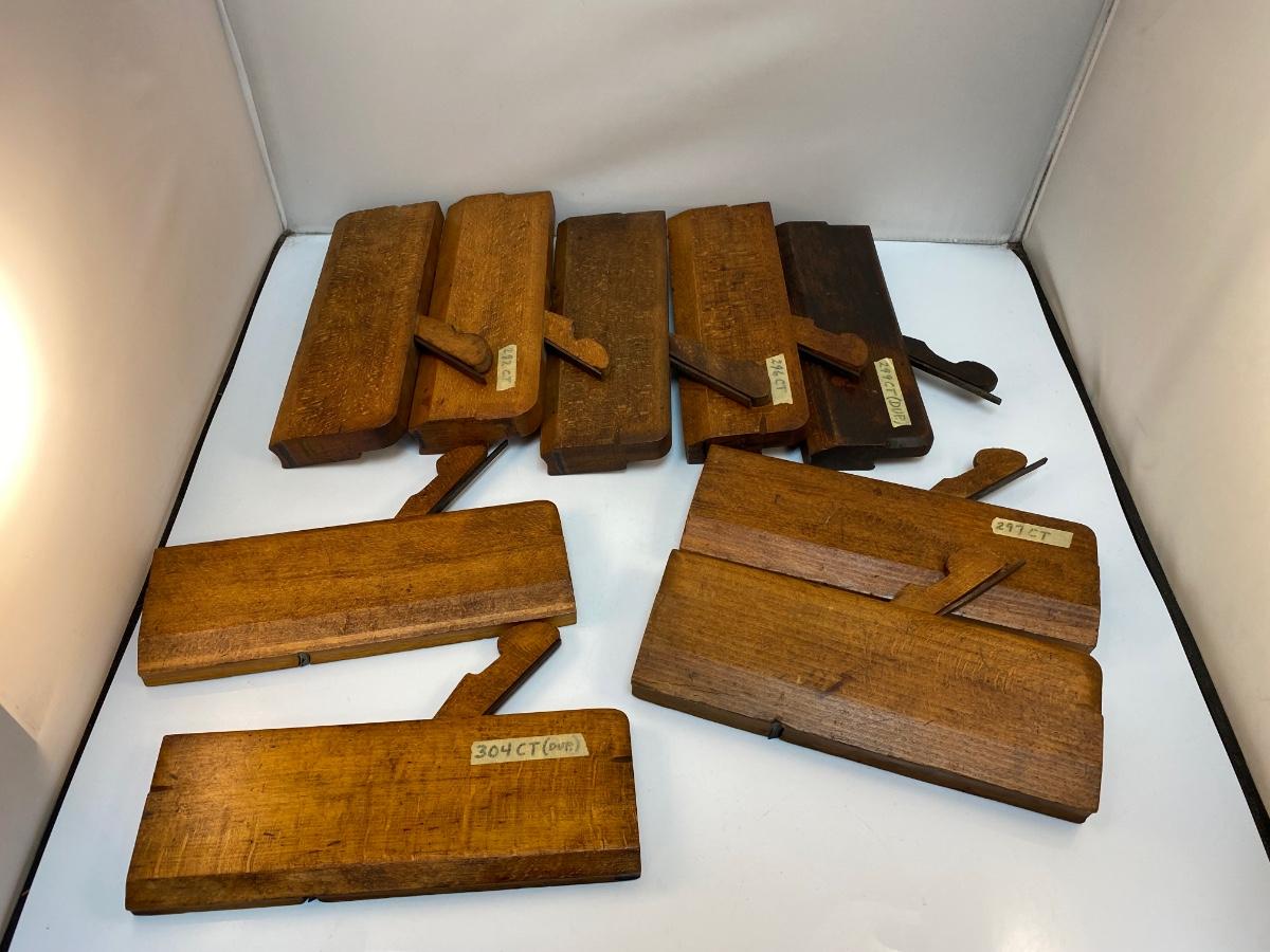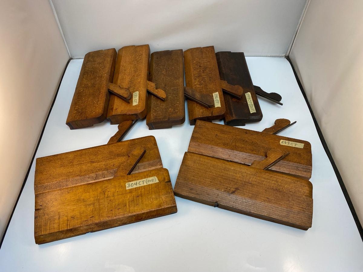 Set of Nine Antique Slight Curve Wood Hand Planes Soft Round Edge