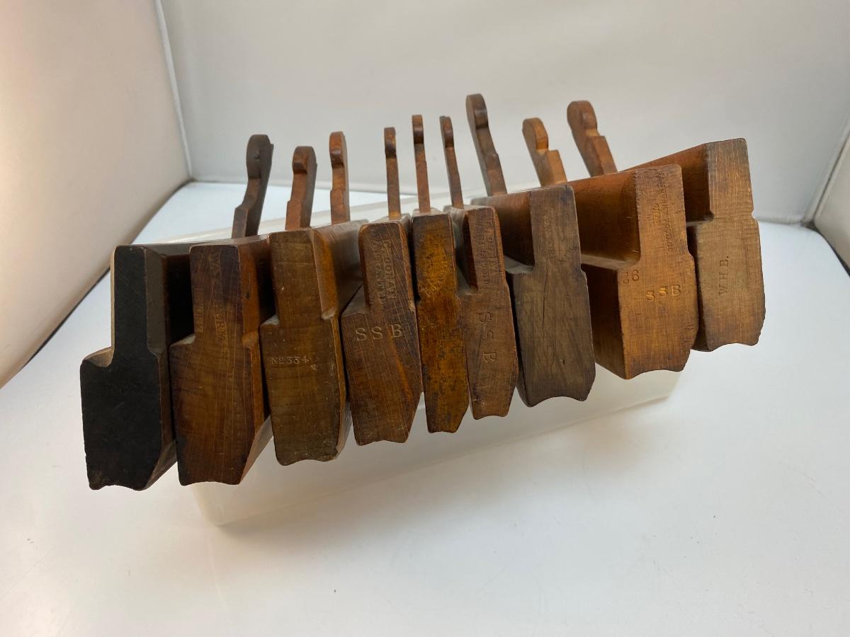 Set of Nine Antique Slight Curve Wood Hand Planes Soft Round Edge. Soft curved edging in a variety of widths.