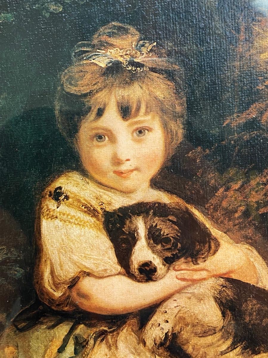 Vintage Joshua Reynolds Classic Art Print Reproduction Love Me Love My Dog Little Girl with Puppy