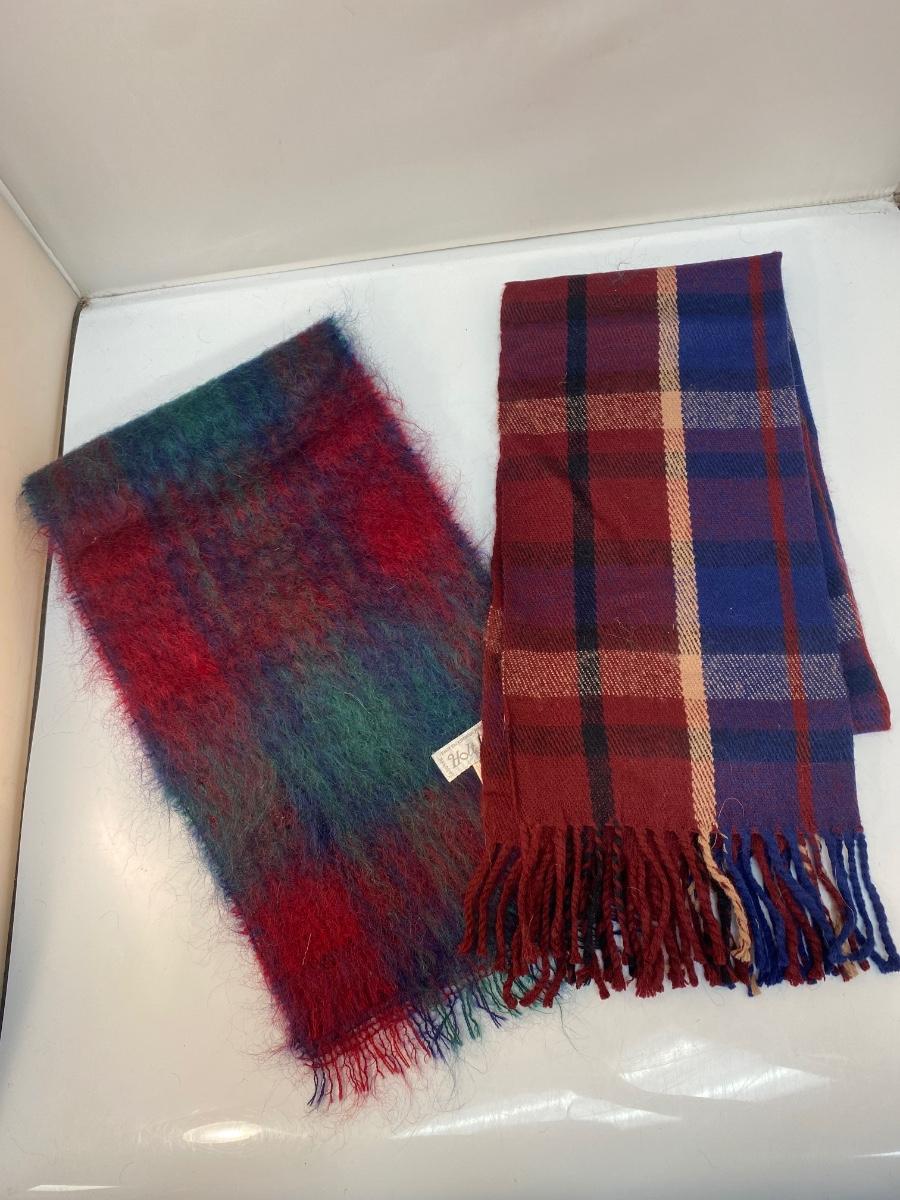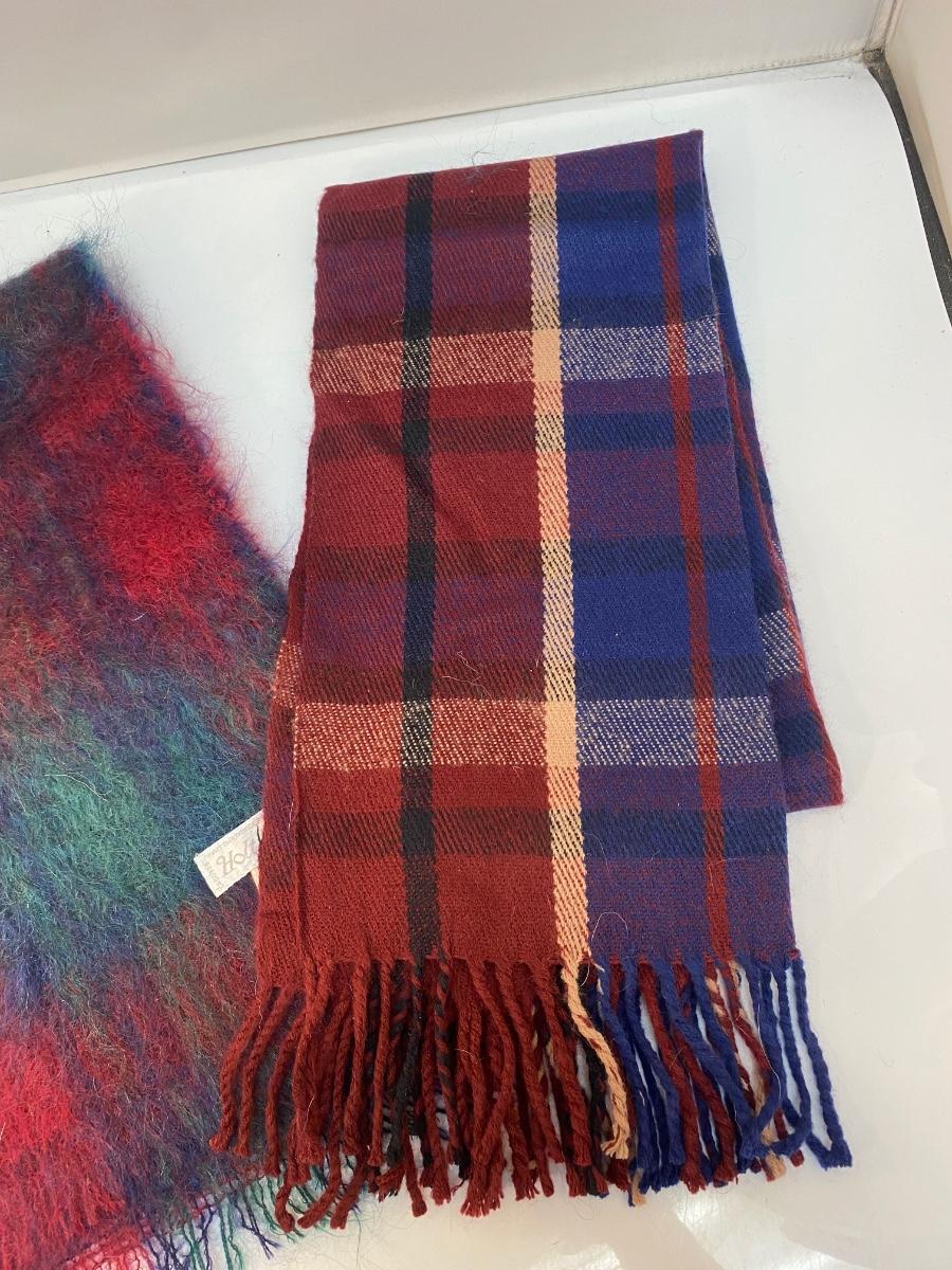 Pair of Dark Jewel Tone Scarves Mohair Scarf Wool Poly. Both are in good condition. The mohair blend scarf has a maker label the other does not.