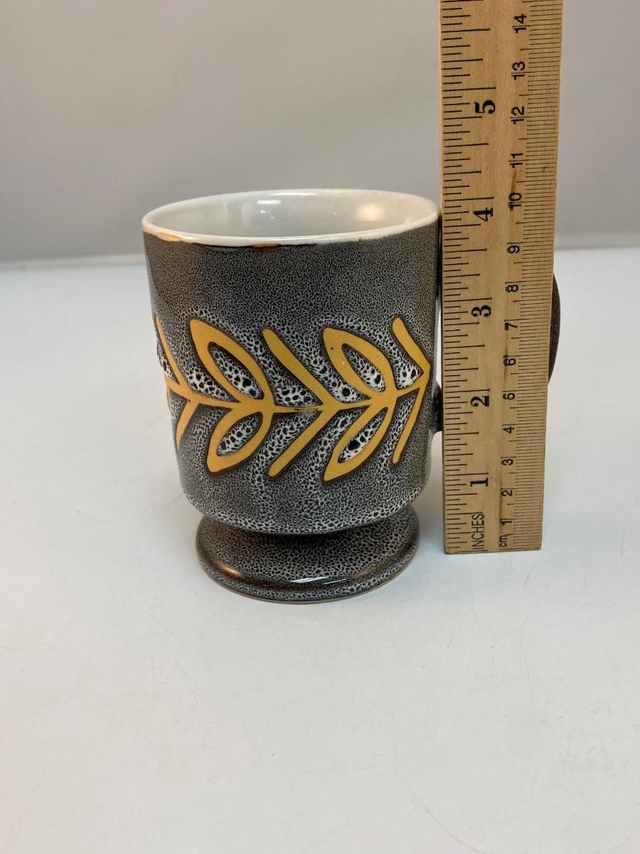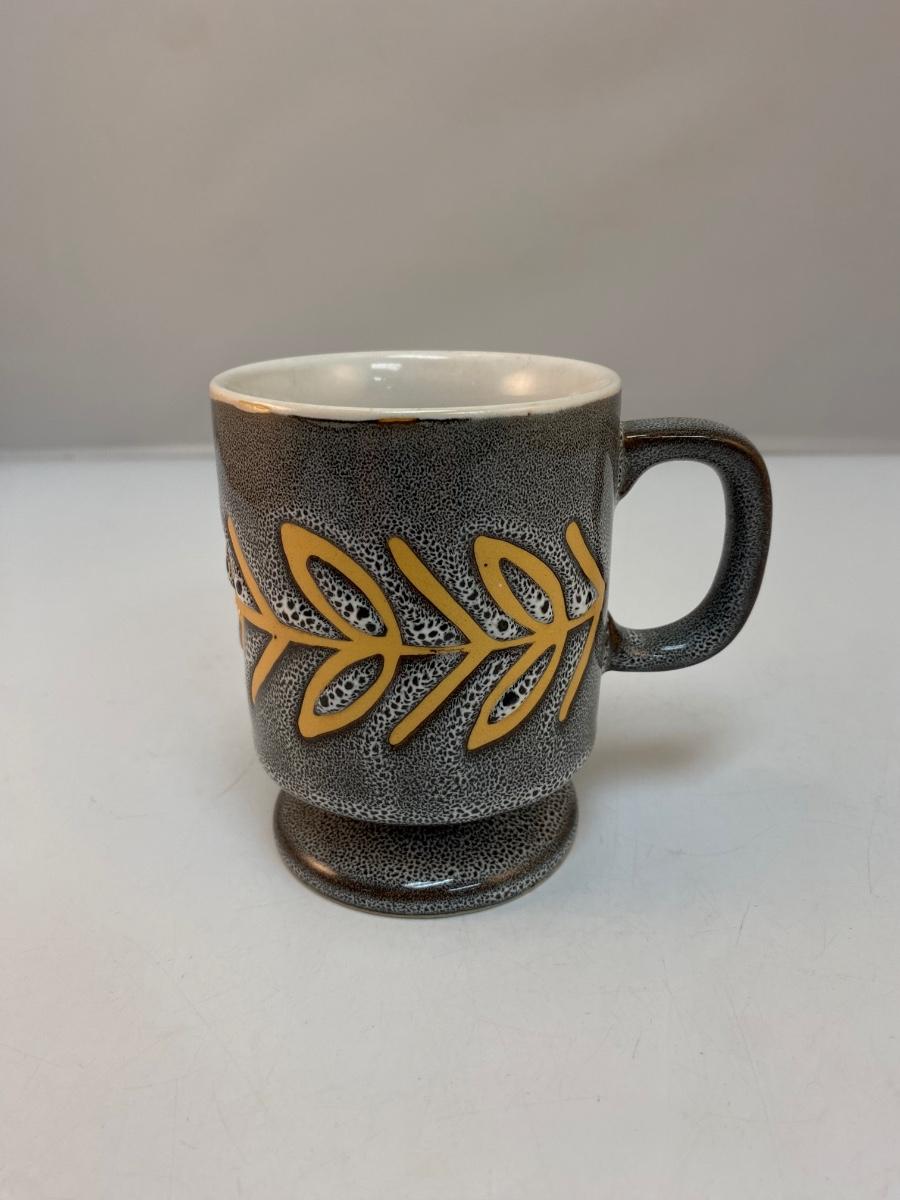 Gray & Gold Footed Stoneware Insignia Mug