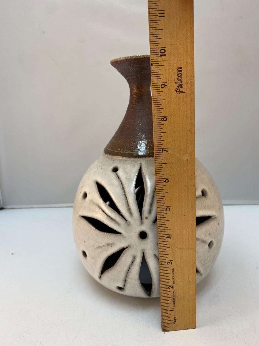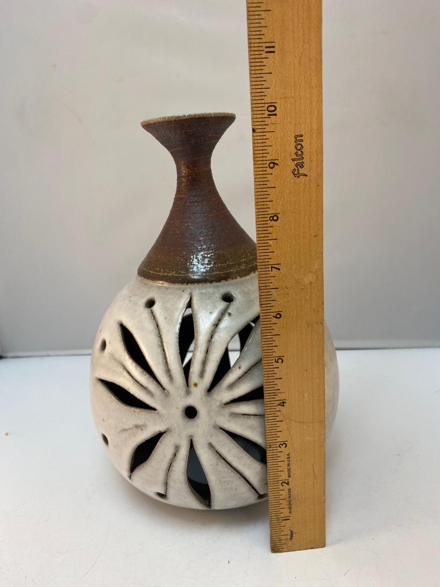 Vintage MCM Retro Star Flower Cut Out Pattern Thrown Art Pottery Vase Signed Artist Victoria Littlejohn
