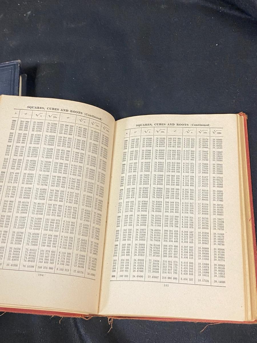 Pair of Antique Vintage Mathematics Books for Chemistry & Physics Higher Learning Tables