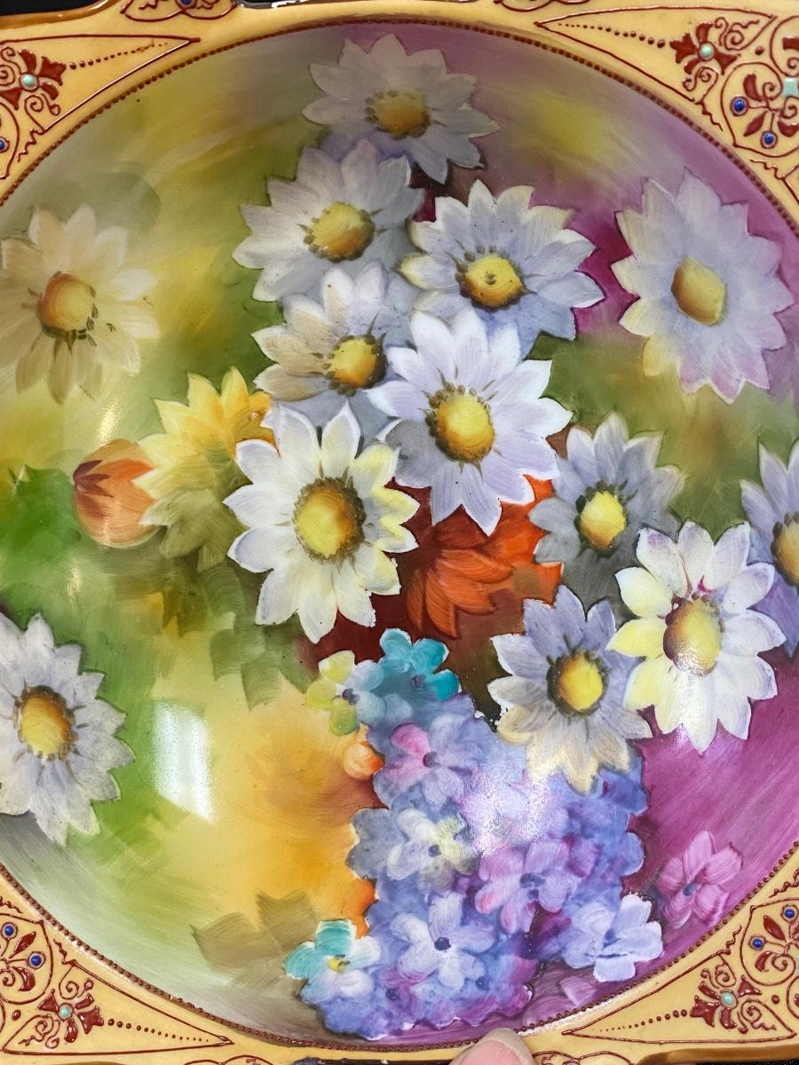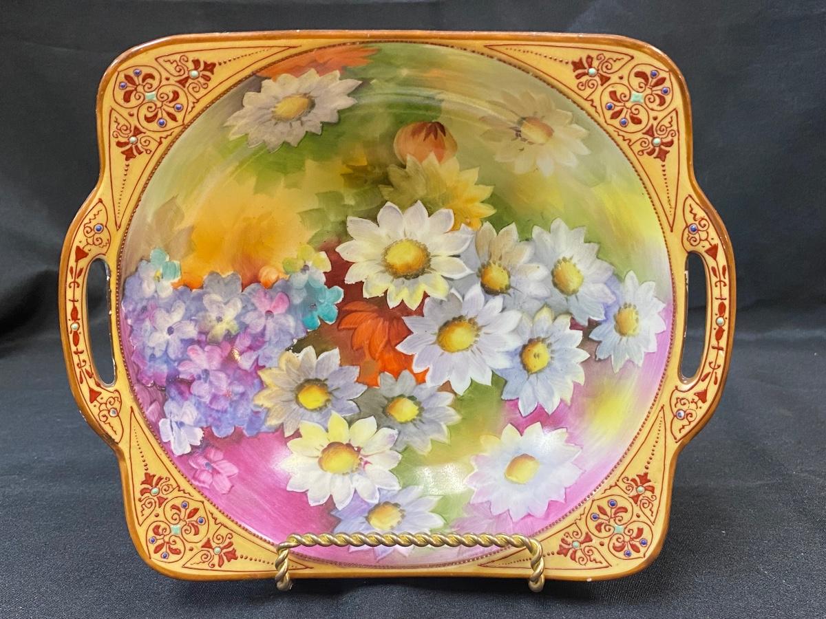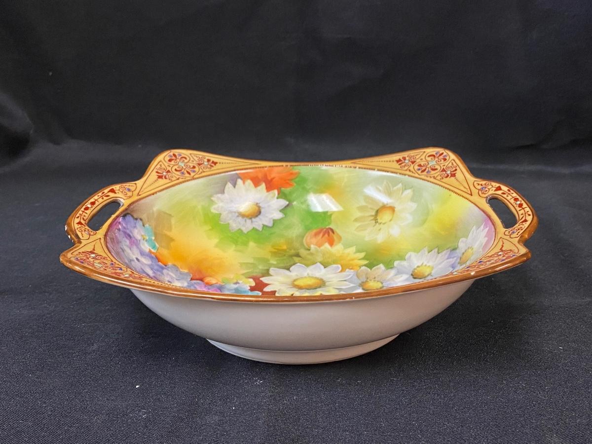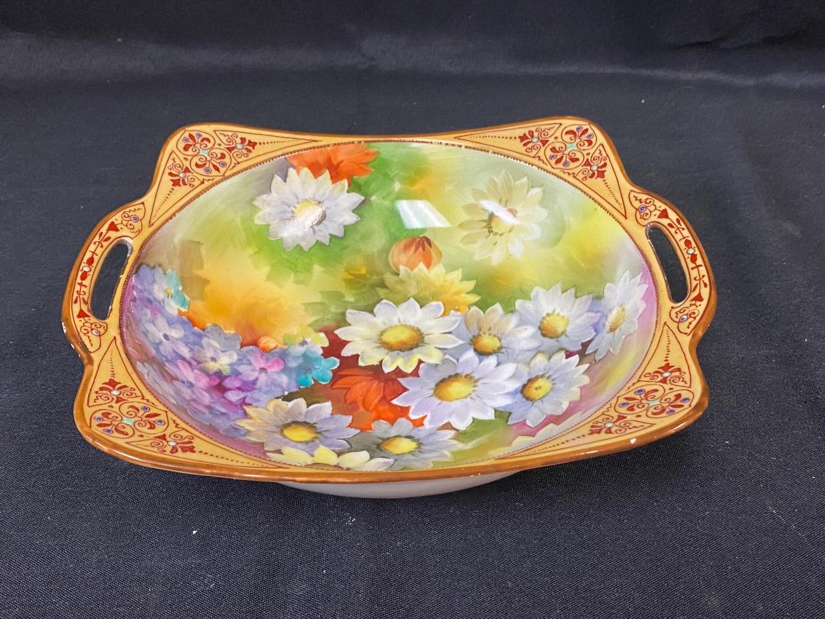 Beautiful Hand Painted Noritake Colorful Floral Bowl Dish with Handles
