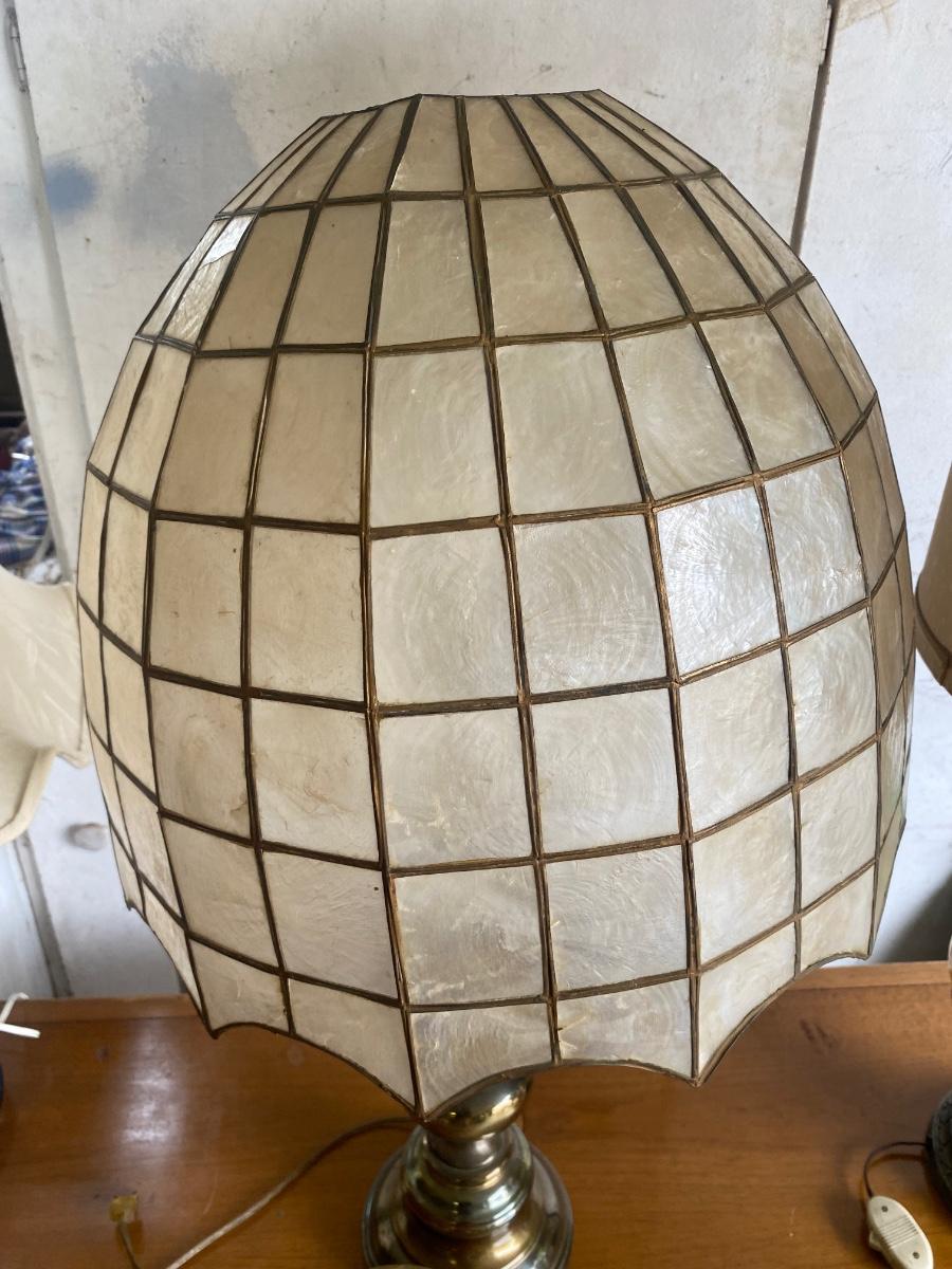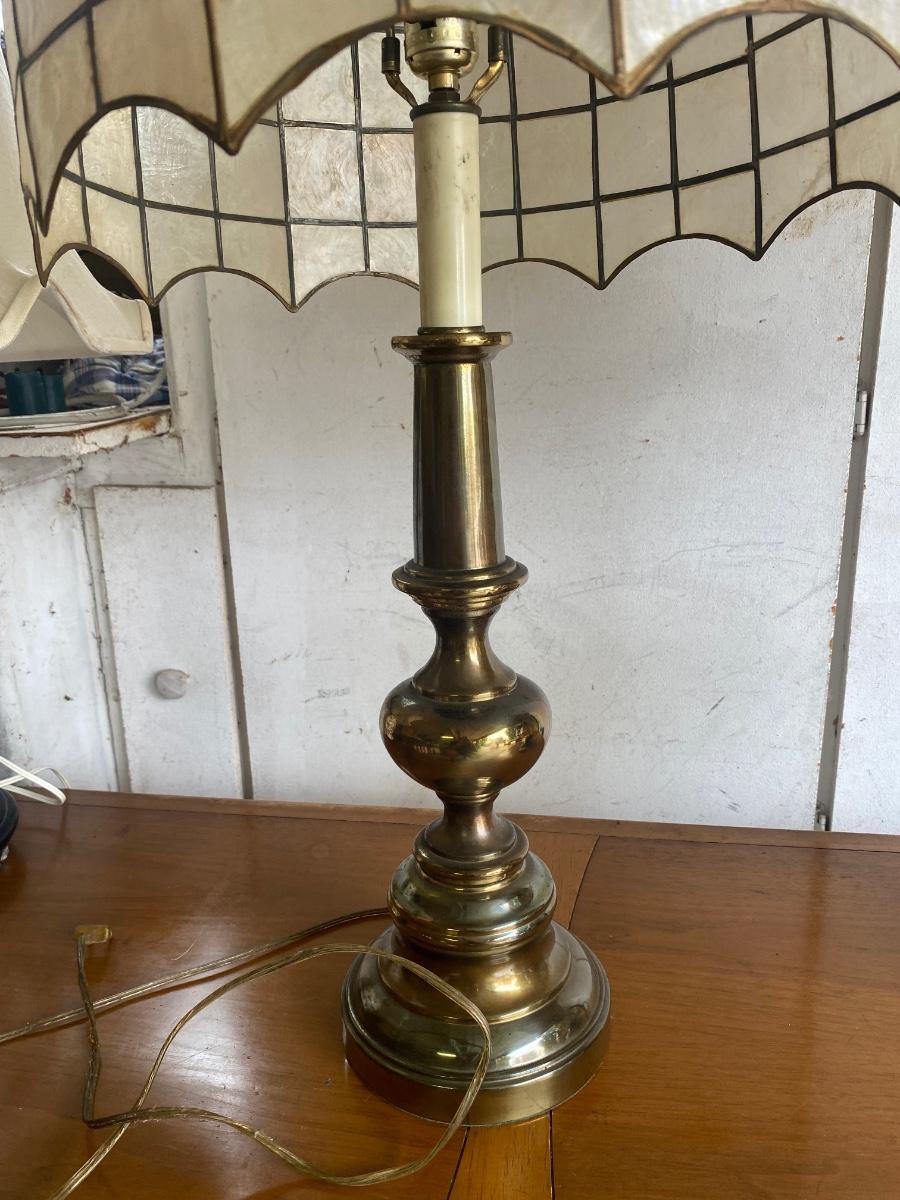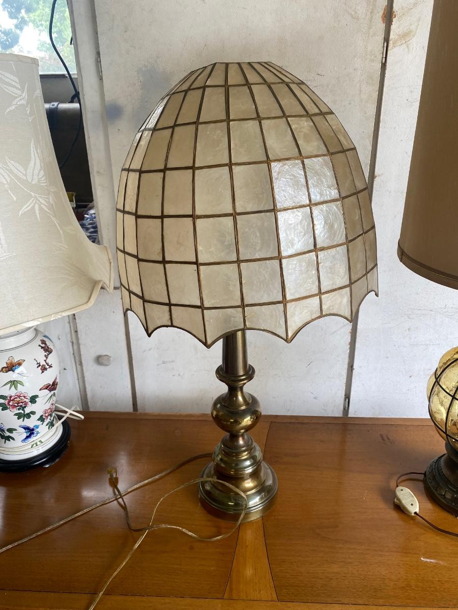 Vintage Capiz Shell and Brass Table Desk Reading Lamp. In good condition, no broken shell pieces. Untested.