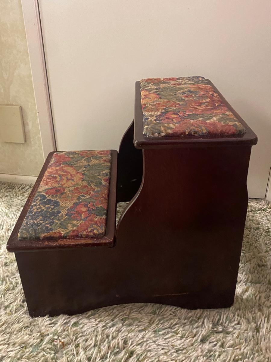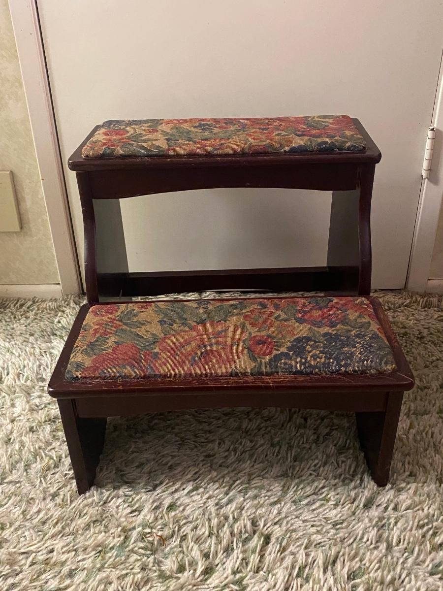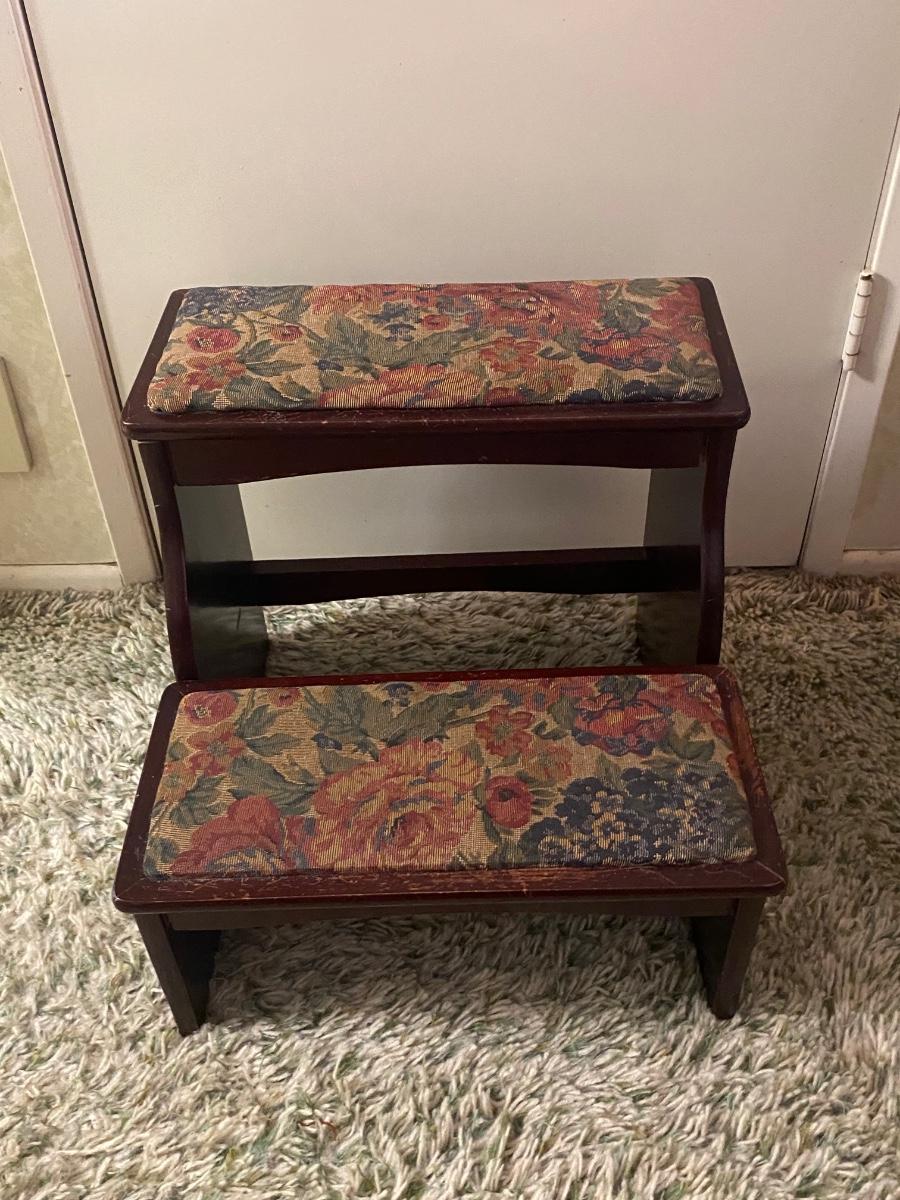 Vintage Upholstered Cushioned Two Step Stepstool