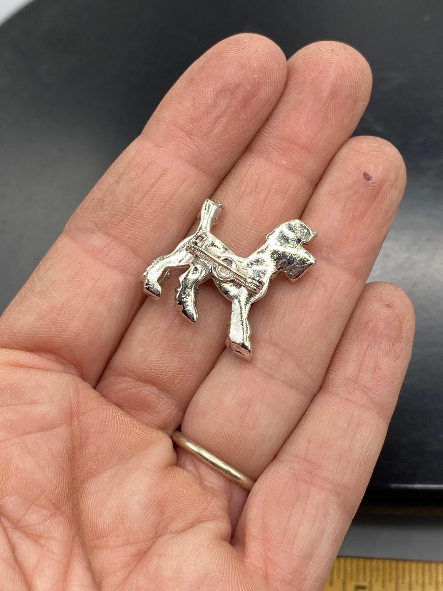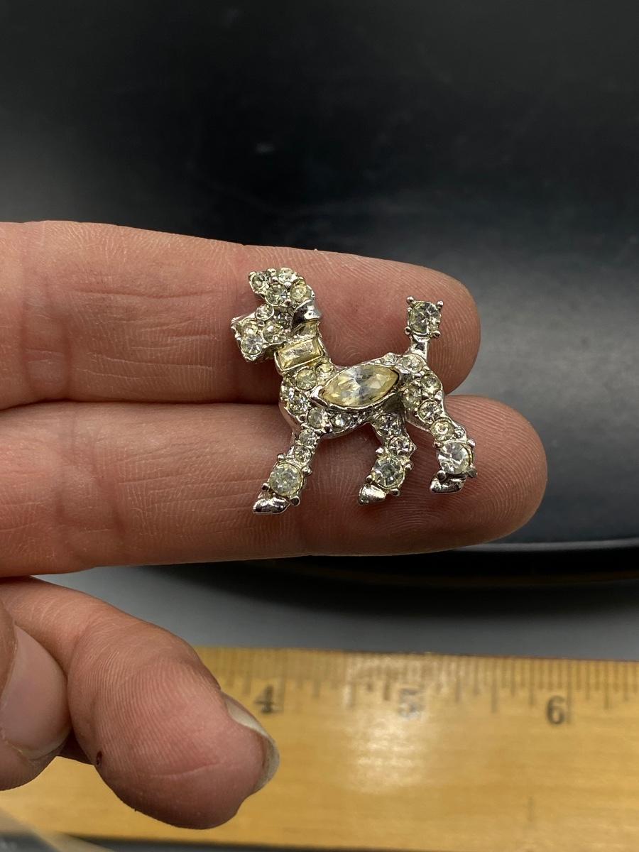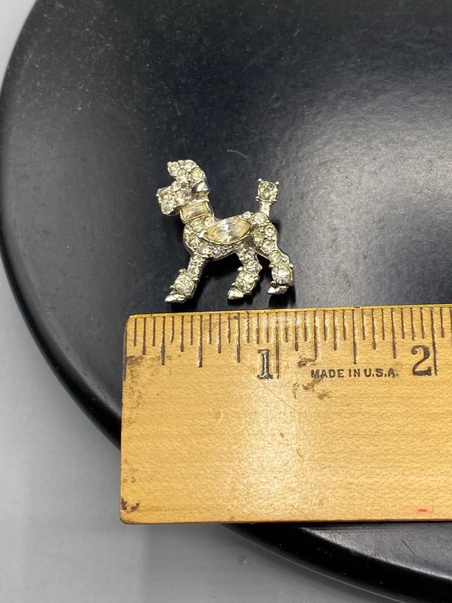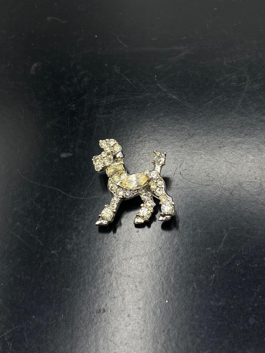 Small Vintage Rhinestone Silver Tone Dog Poodle Pin Brooch. In good condition. No missing stones.