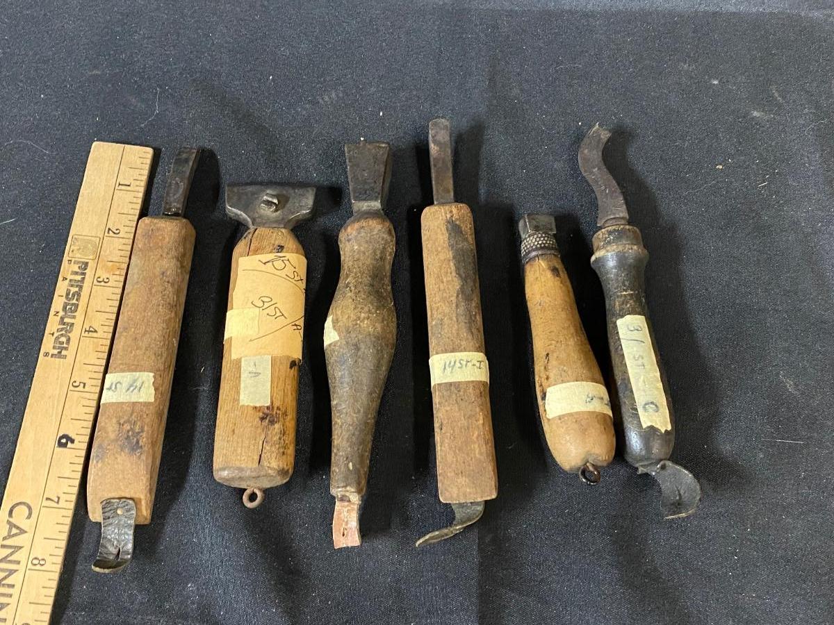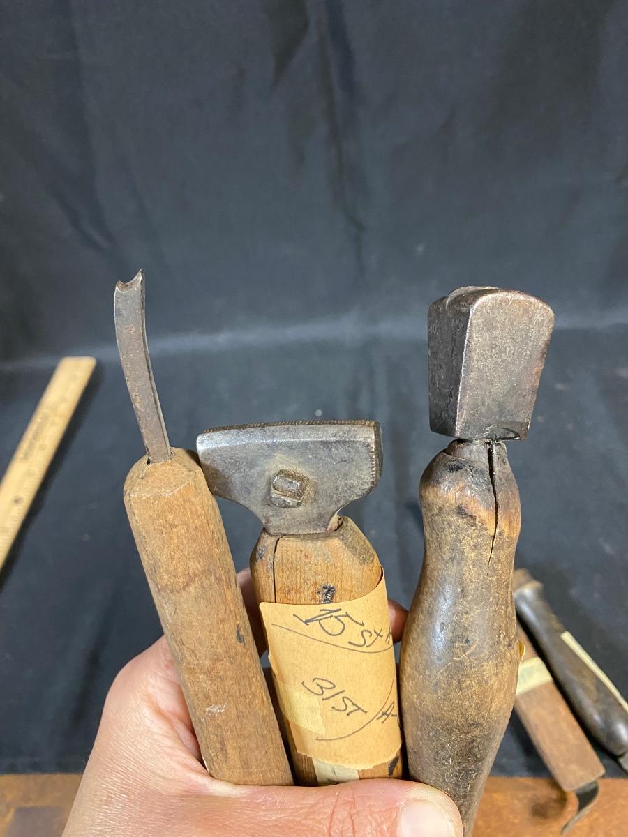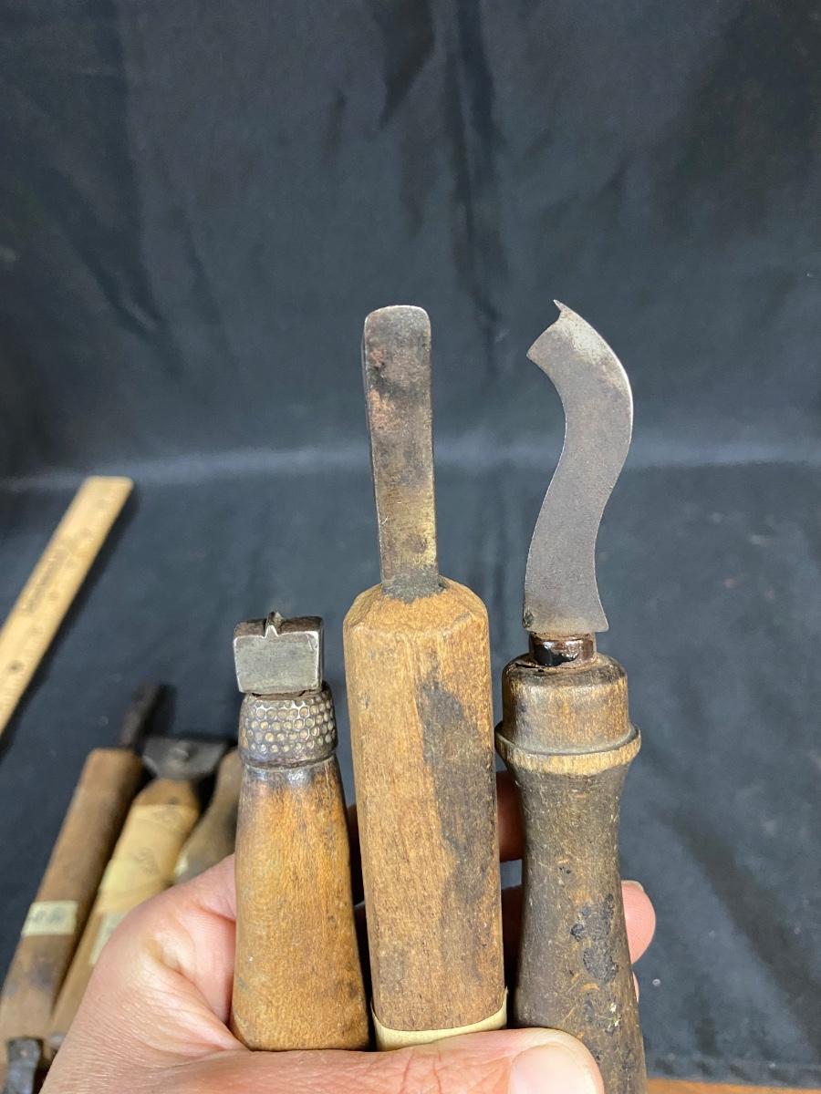Vintage Antique Primitive Shoemaker Cobblers Leather Working Hand Tool Lot Wooden Handles Wood working