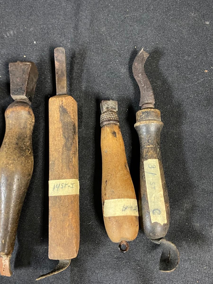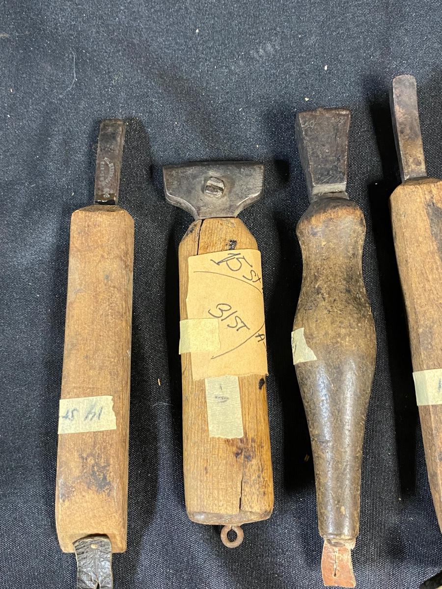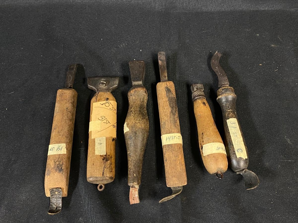 Vintage Antique Primitive Shoemaker Cobblers Leather Working Hand Tool Lot Wooden Handles Wood working