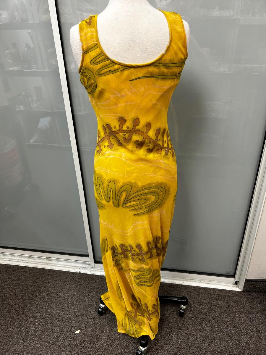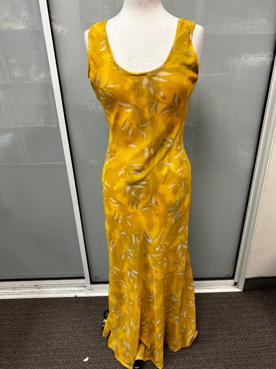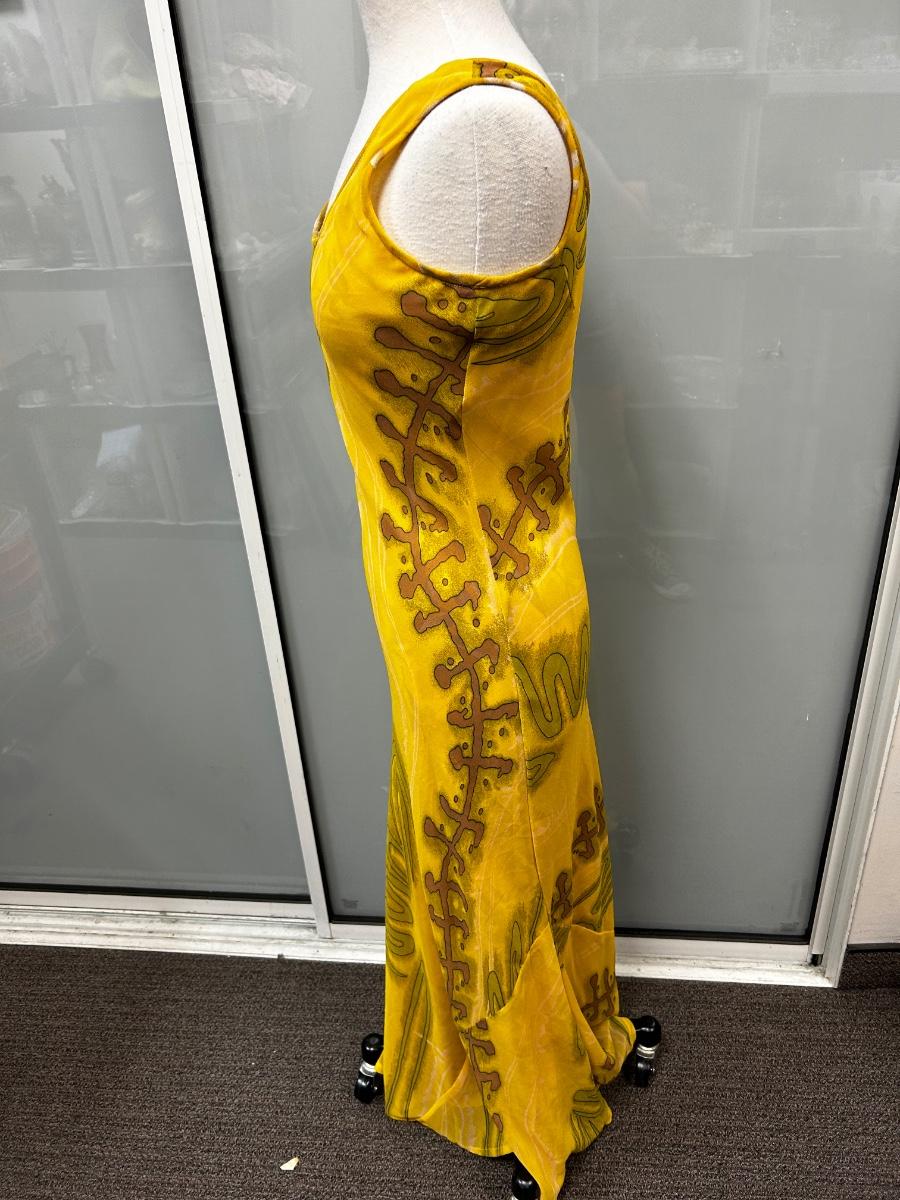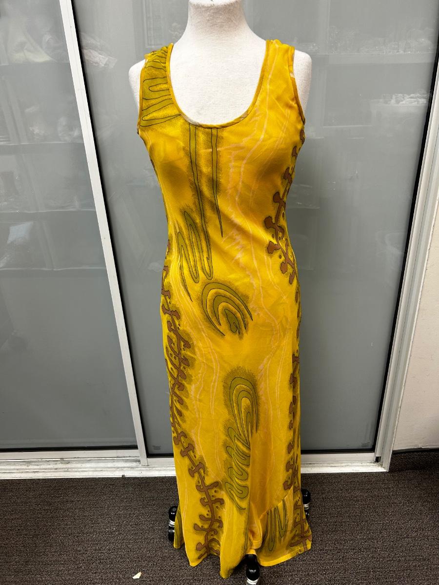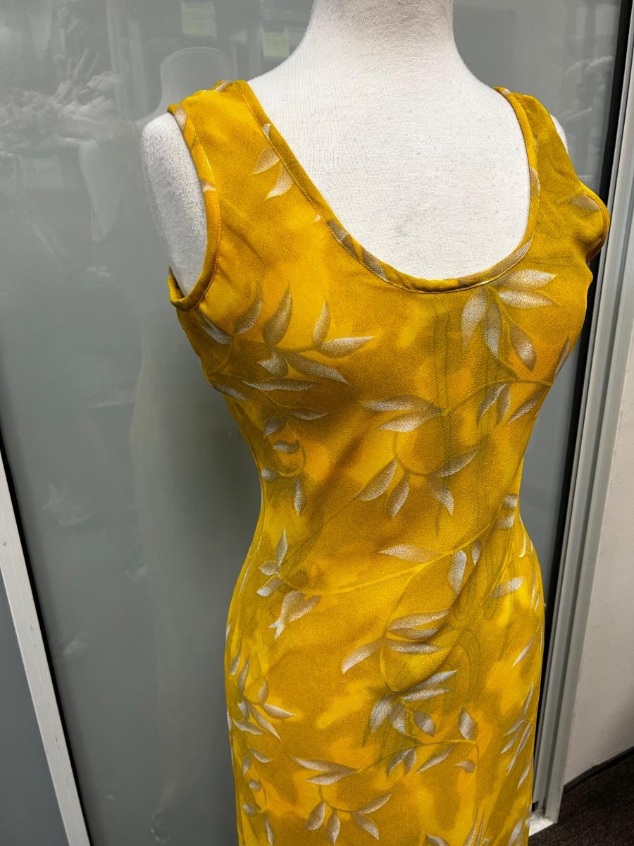Ladies Womans Reversible Double Layer Yellow Sheer Abstract Vine Pattern Tank Maxi Sun Dress. Good condition. Double layer sheer/lightweight material with different patterns but same color of yellow. No tags, size small/medium.