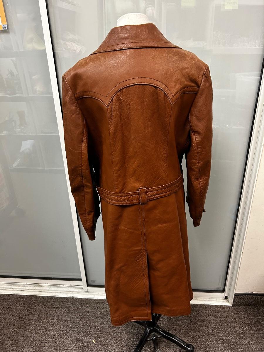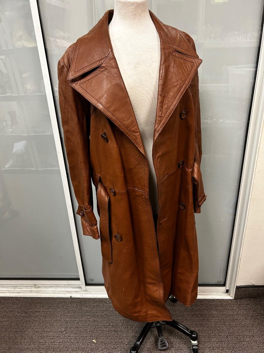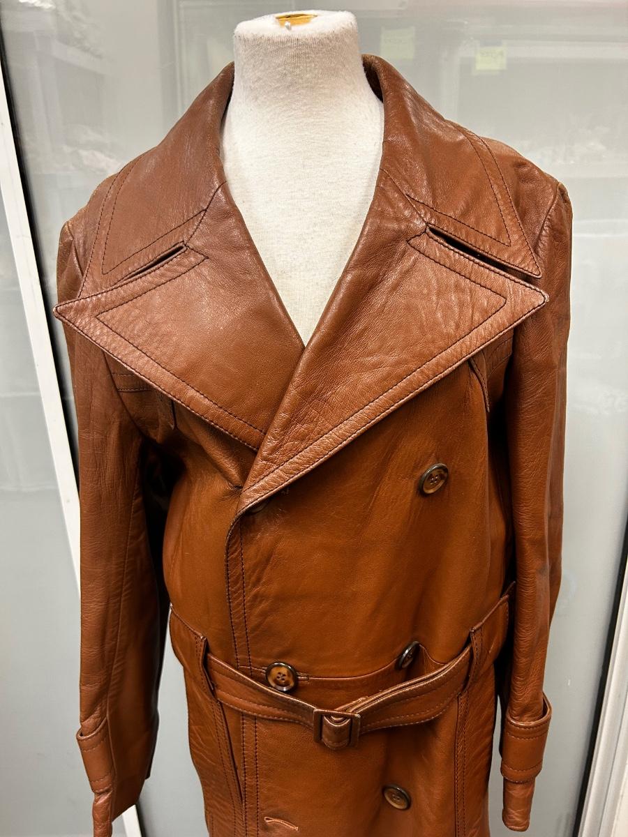 Vintage Worn Brown Leather Whitehouse & Hardy Trench Coat Jacket