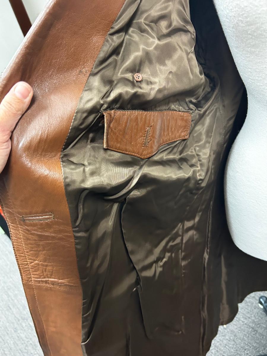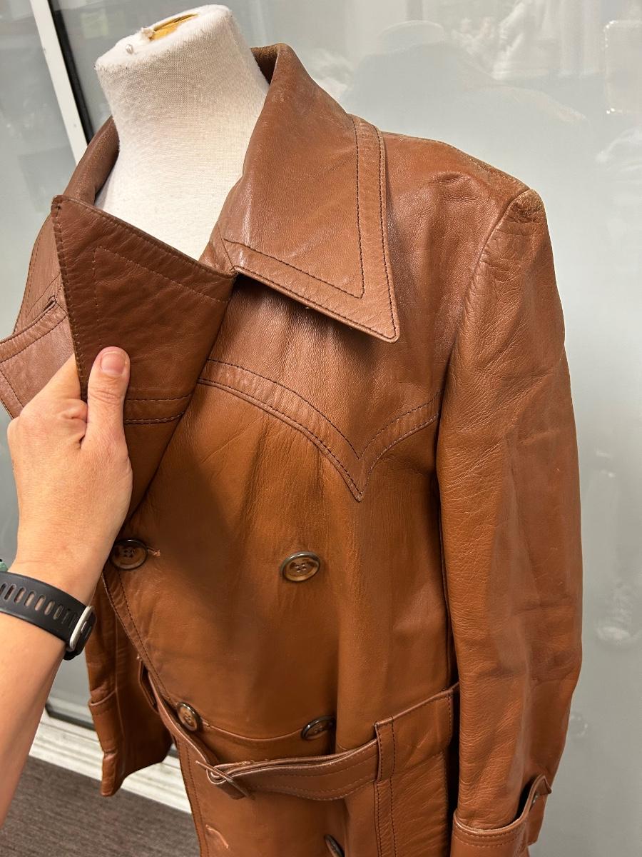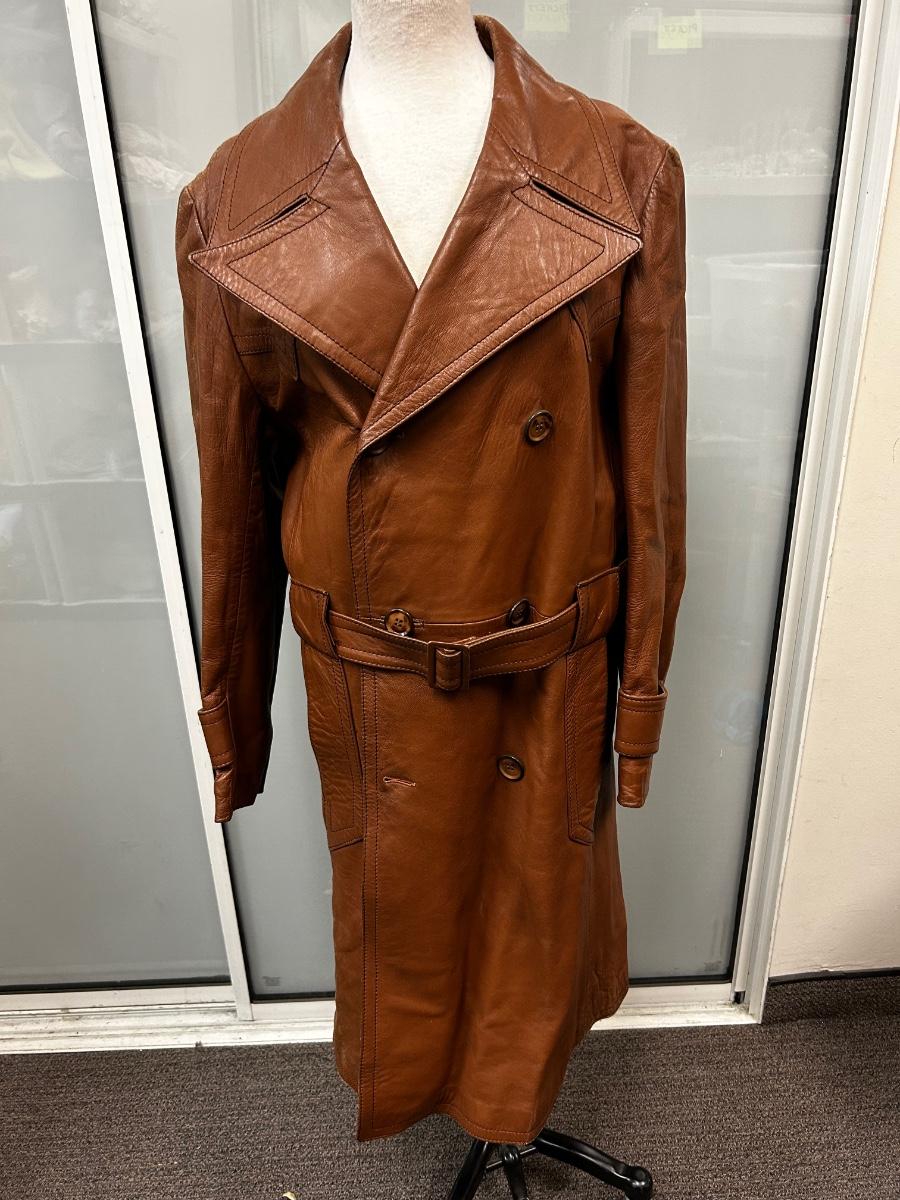 Vintage Worn Brown Leather Whitehouse & Hardy Trench Coat Jacket
