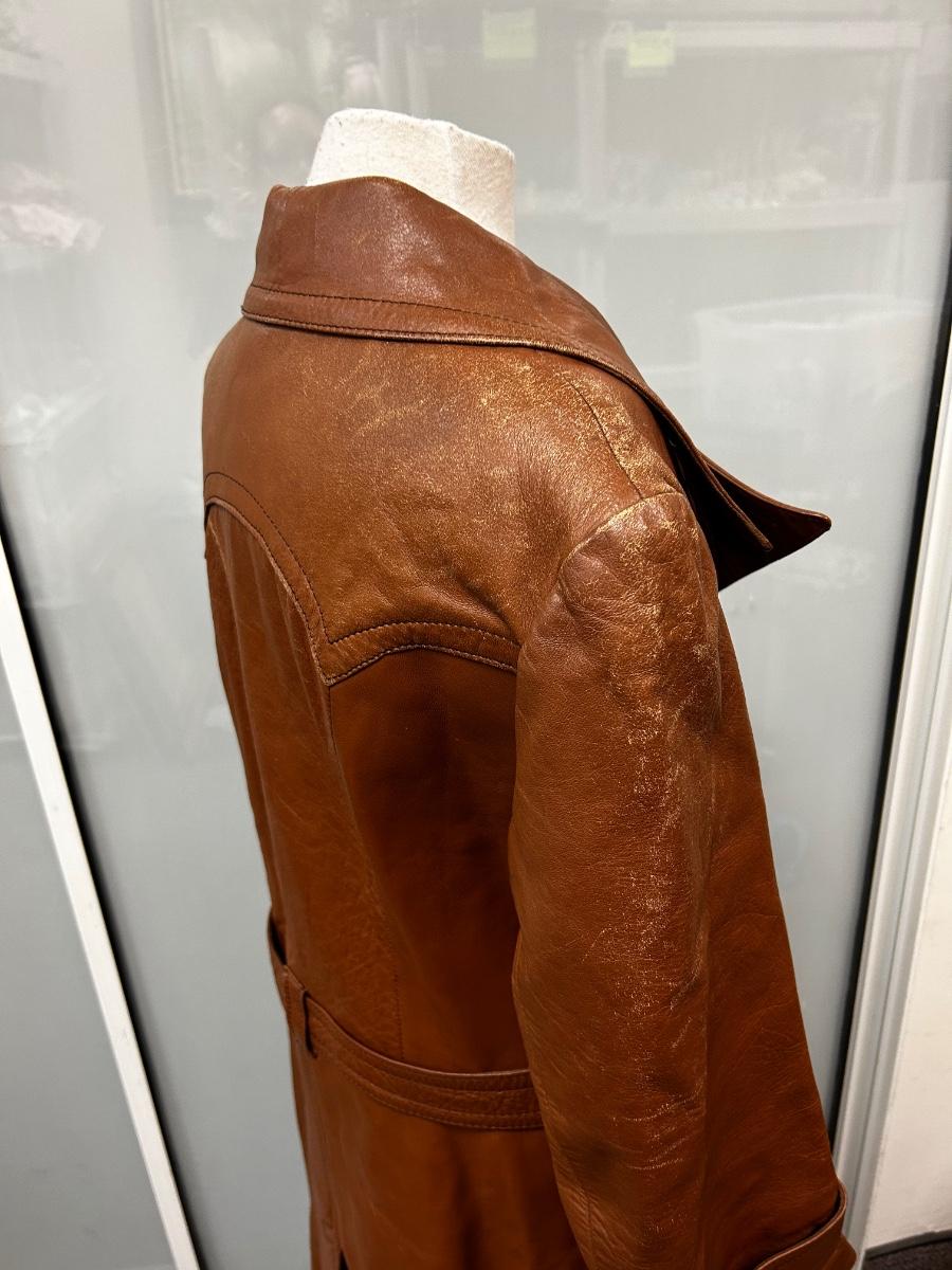 Vintage Worn Brown Leather Whitehouse & Hardy Trench Coat Jacket. In vintage condition. Shoulders are dry and leather has cracked a little. See photos.
