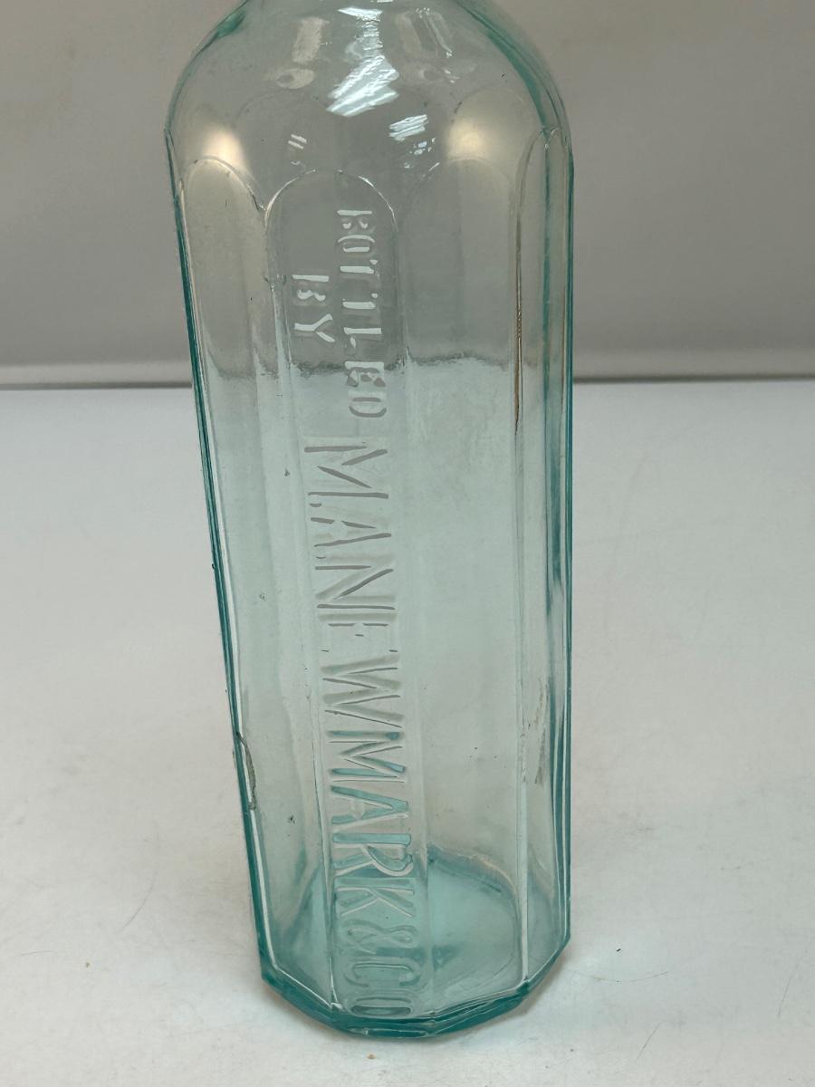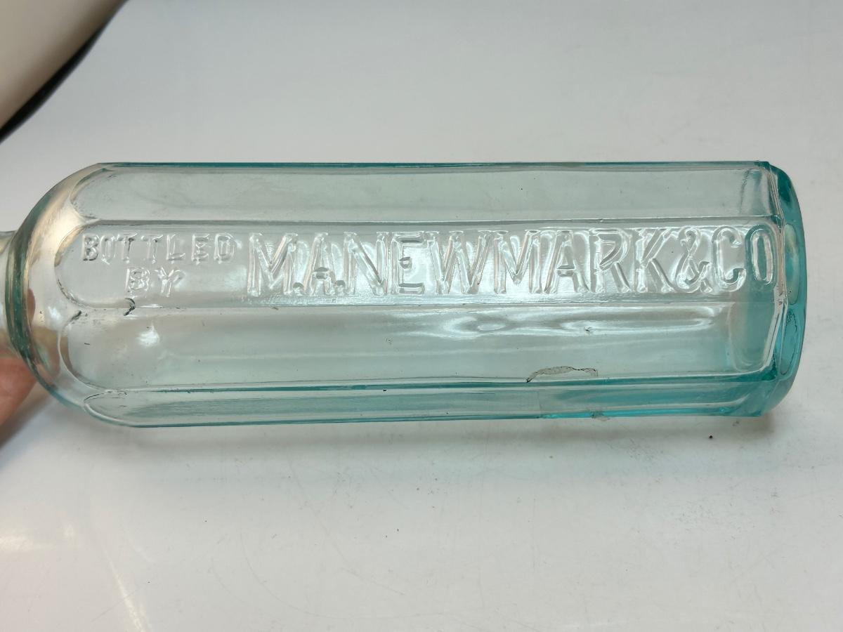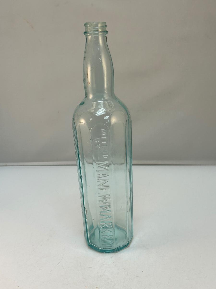 Vintage Light Blue Ribbed Glass Bottle M.A. Newmark & Co. Good condition.