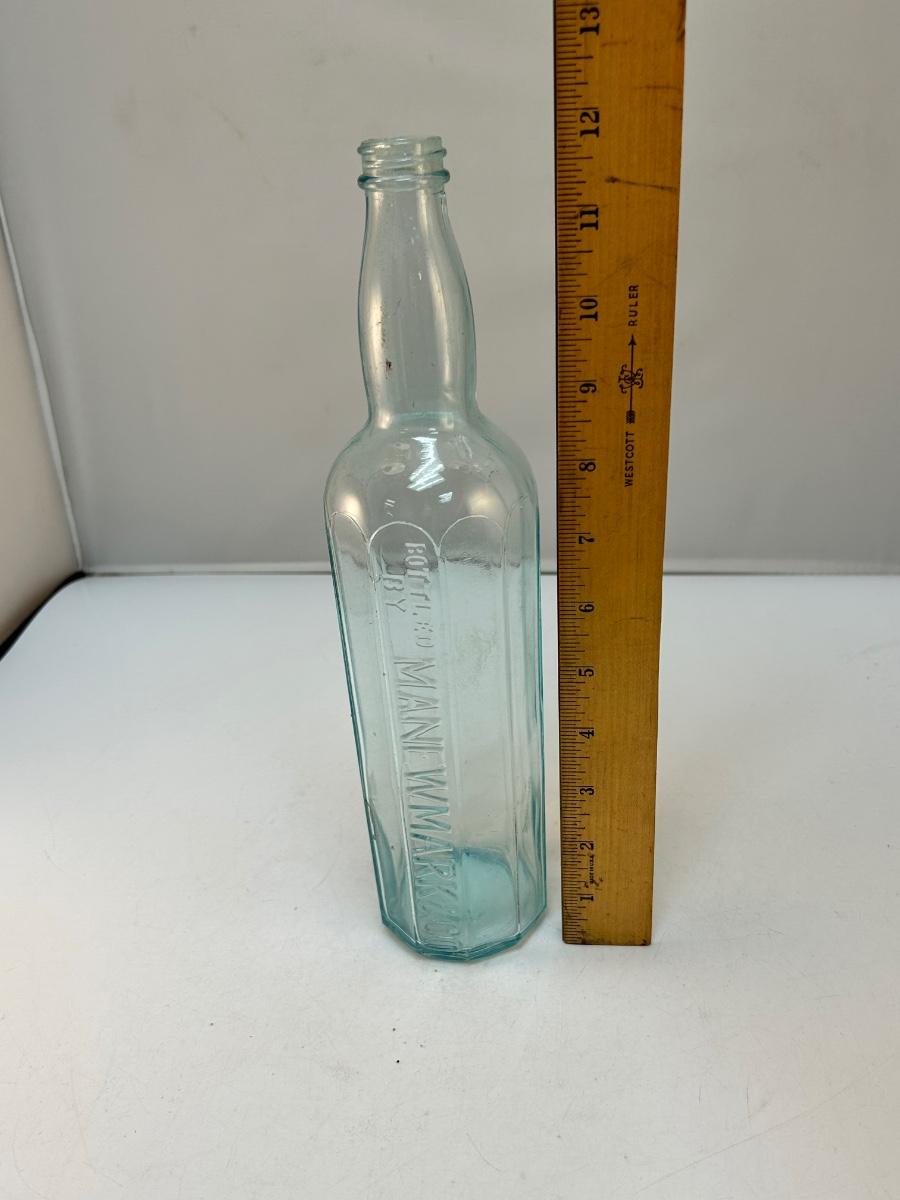 Vintage Light Blue Ribbed Glass Bottle M.A. Newmark & Co