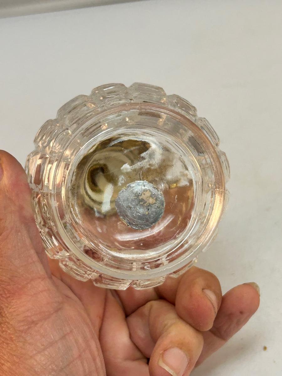 Vintage Square Pattern Pressed Glass Perfume Bottle Atomizer with Gold Tone Metal Flower Top