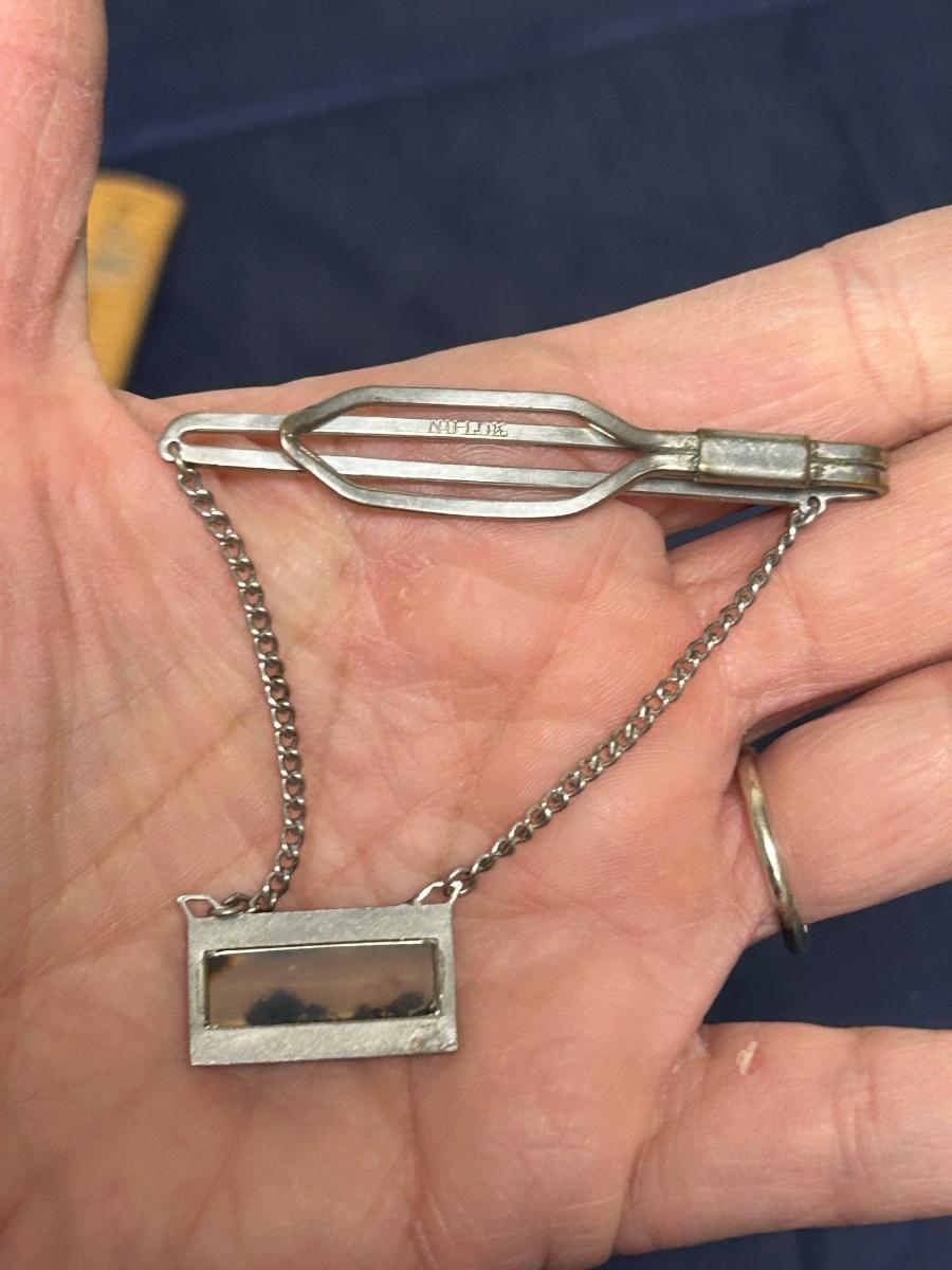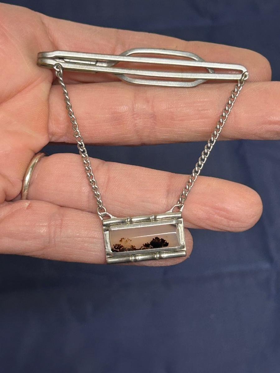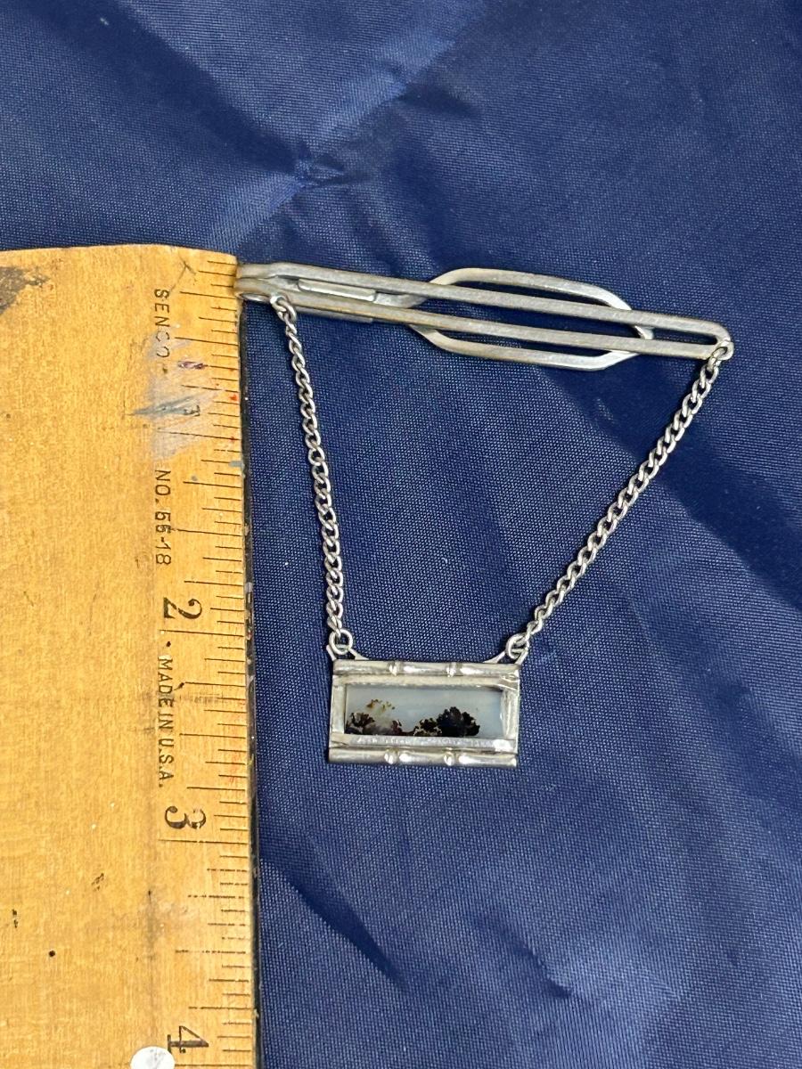 Vintage Retro Silver Tone Tie Clip with Lucite Center