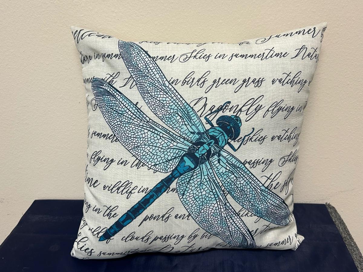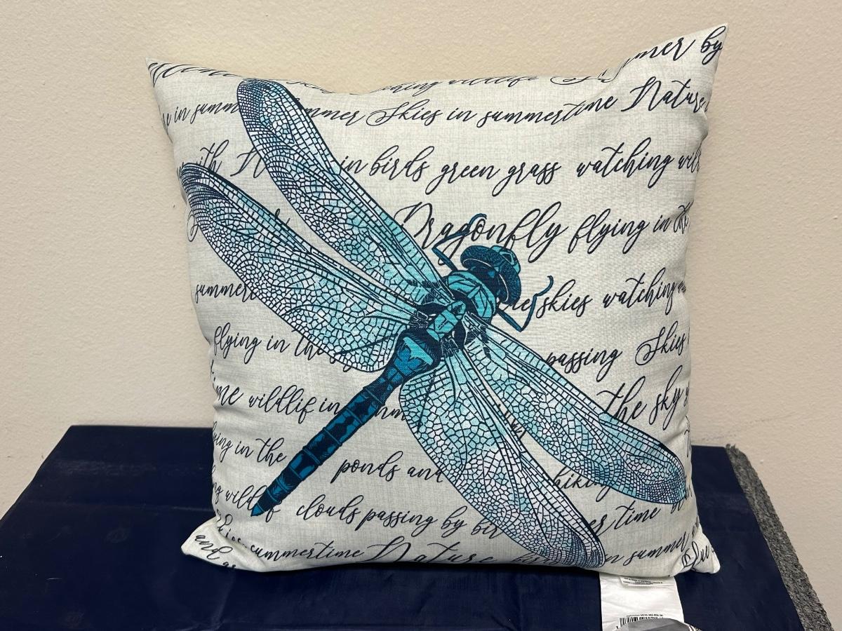 Mainstays Blue Dragonfly Accent Throw Pillow. In good condition. Original maker labels are still attached.