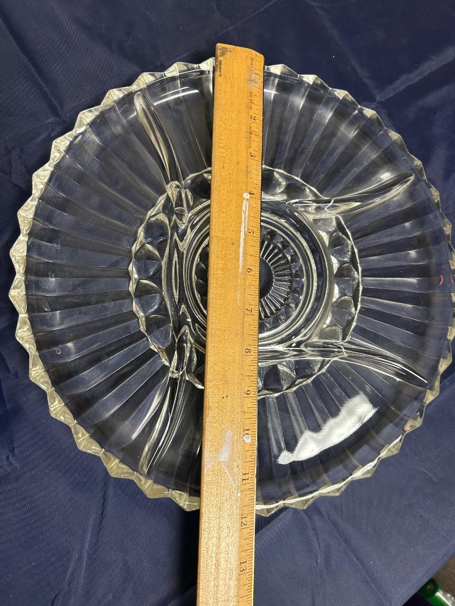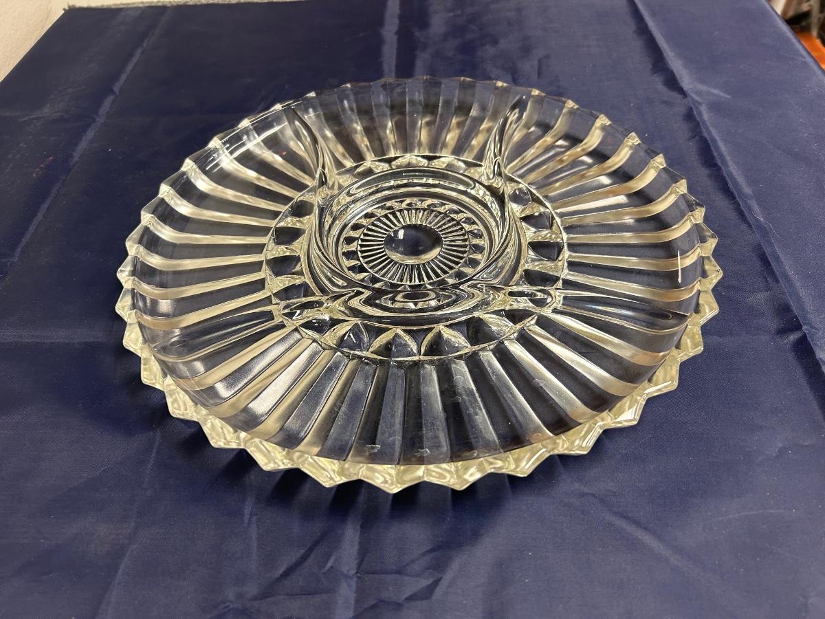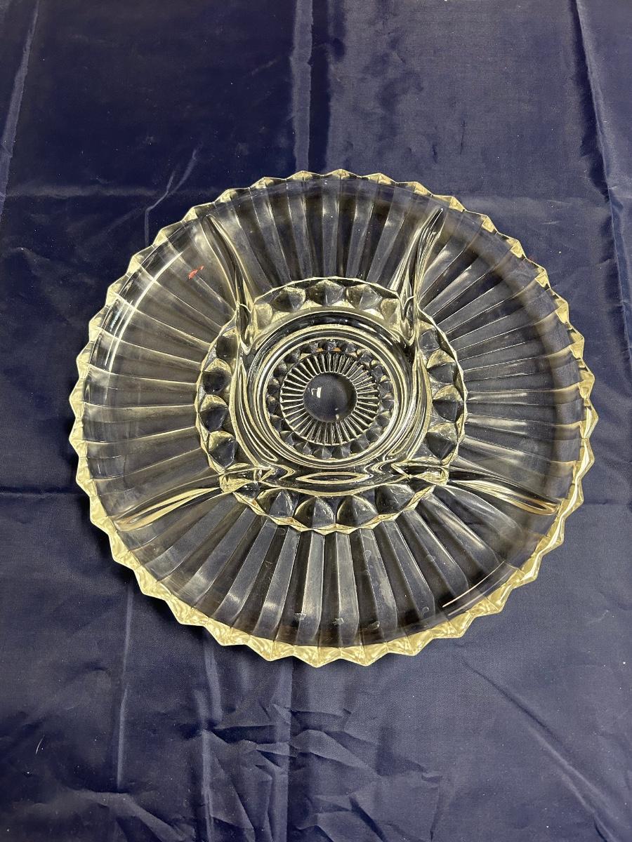 Vintage Pressed Glass Divided Serving Tray. In good condition, no chips.