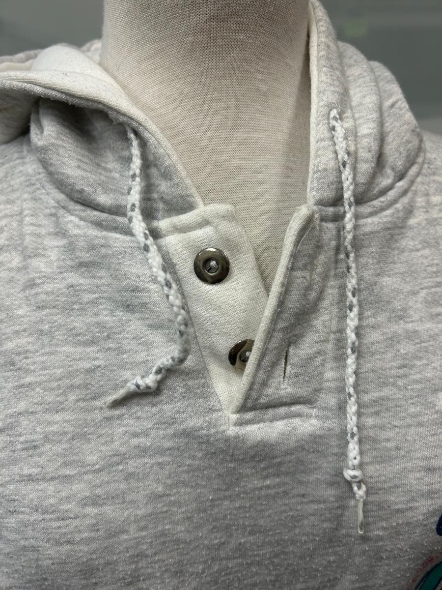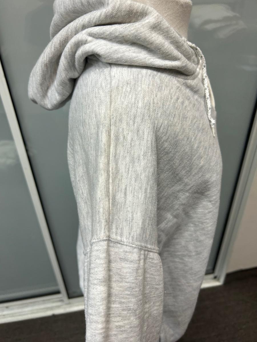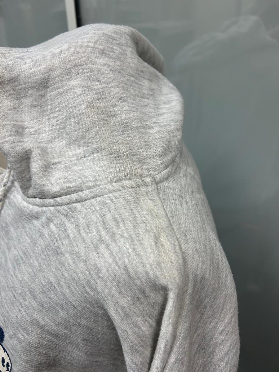Retro Disney Fashions Grey Mickey Mouse Hoodie Sweatshirt Sweater with Hood Size Large. In good worn condition. No stains but looks like it might have discolor at shoulders from hanging in closet.