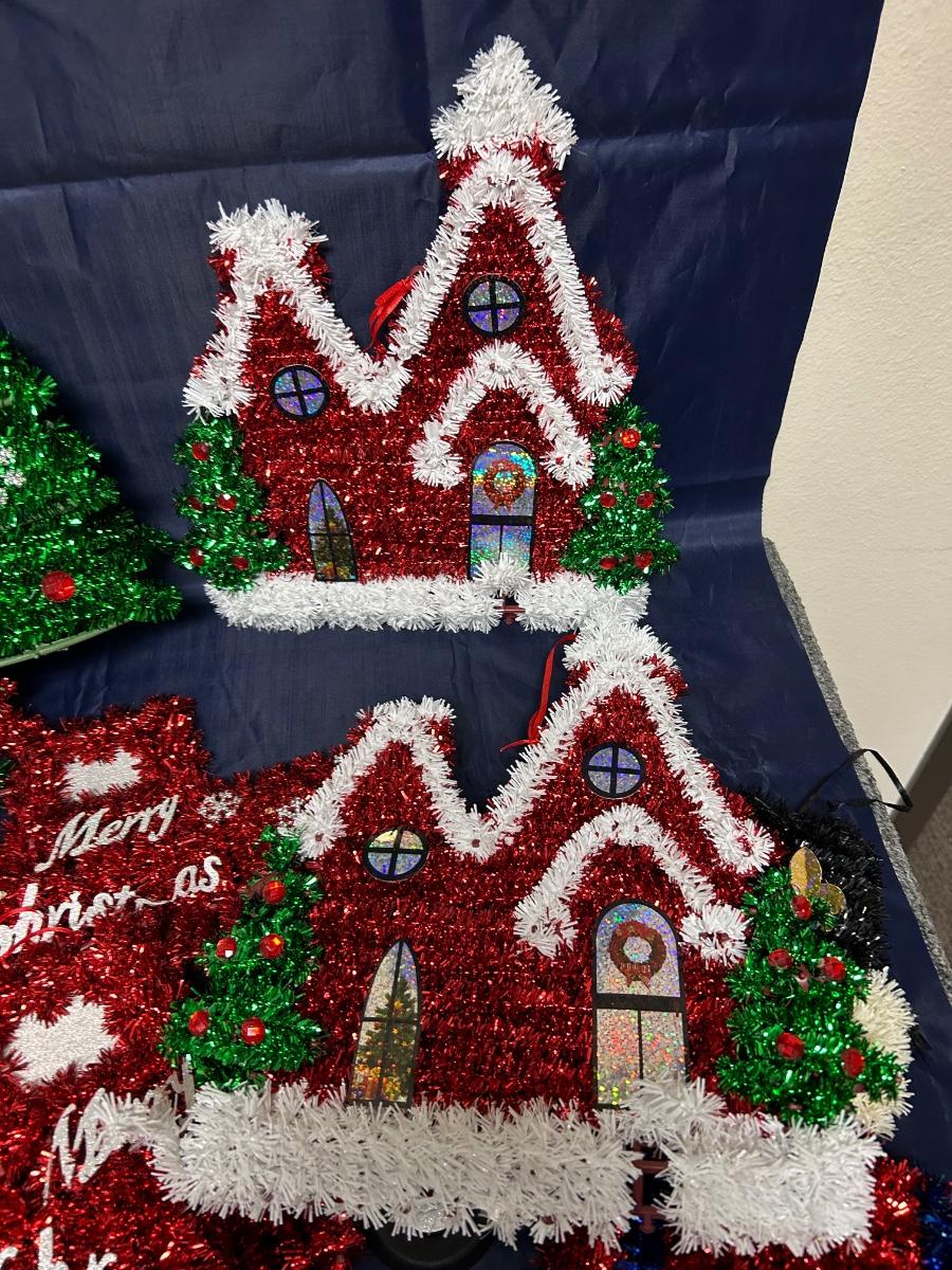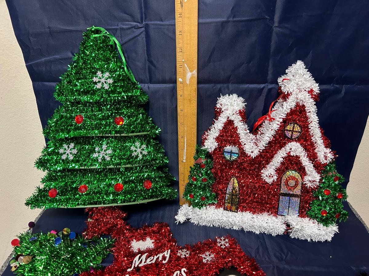 Metallic Foil Tinsel Hanging Christmas Holiday Decor. In good condition.