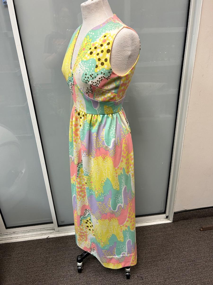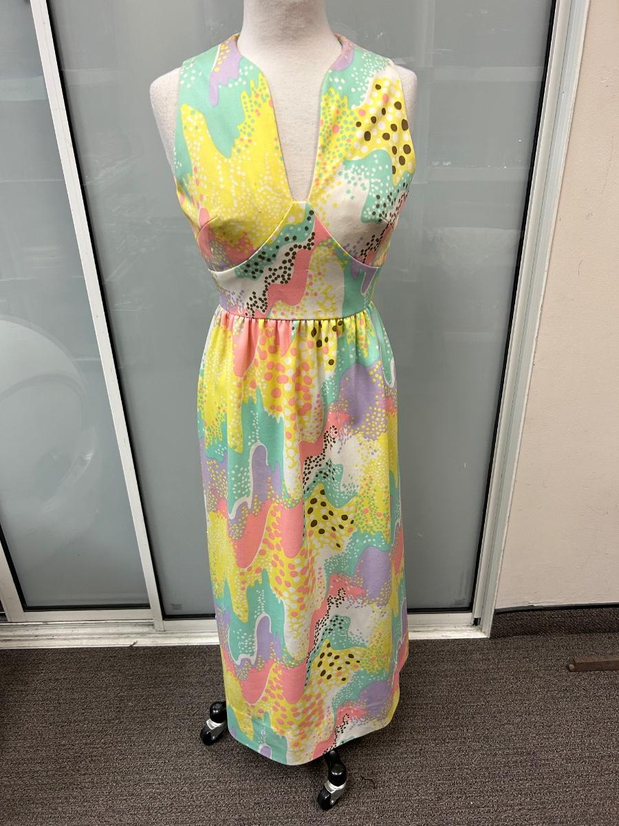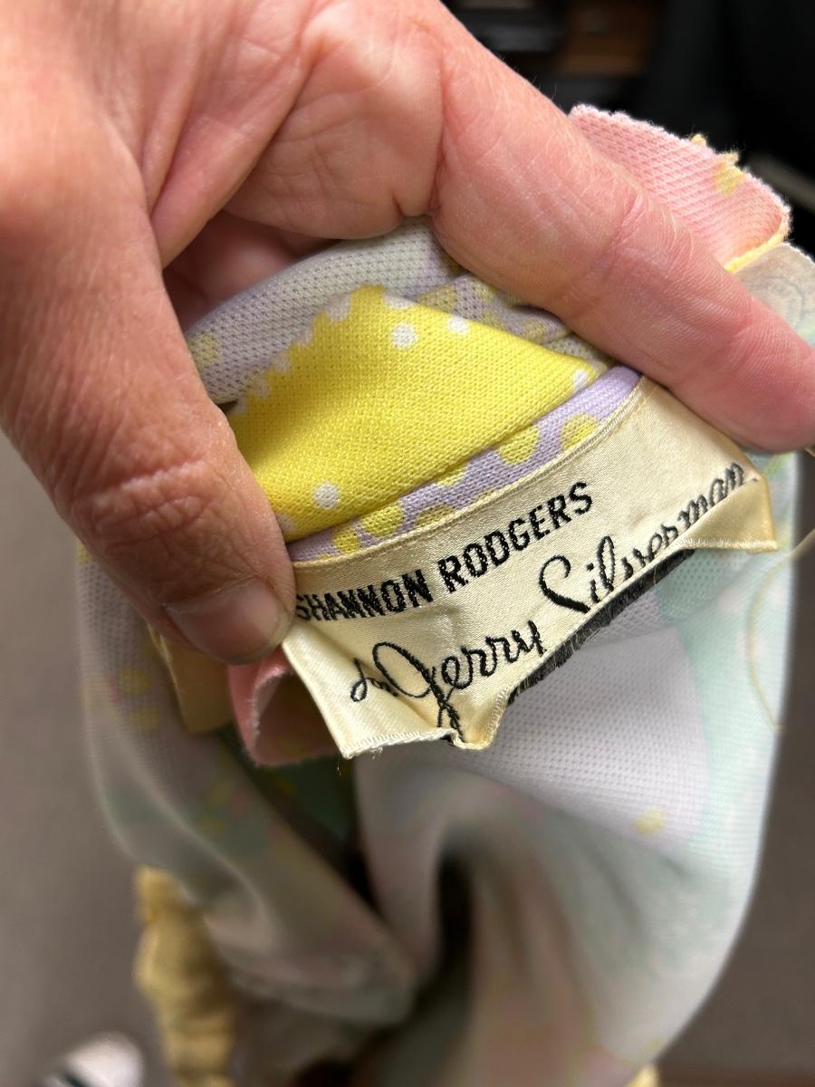 Vintage Springtime Colorful Shannon Rogers for Jerry Silverman Sleeveless Dress. In vintage condition. Size 8. Some light spots and discoloration, no major stains or holes.