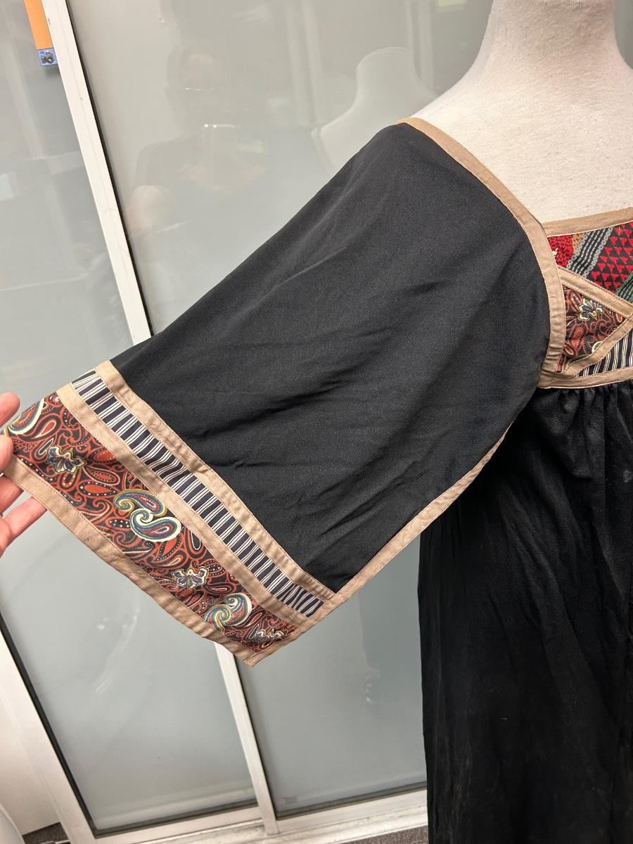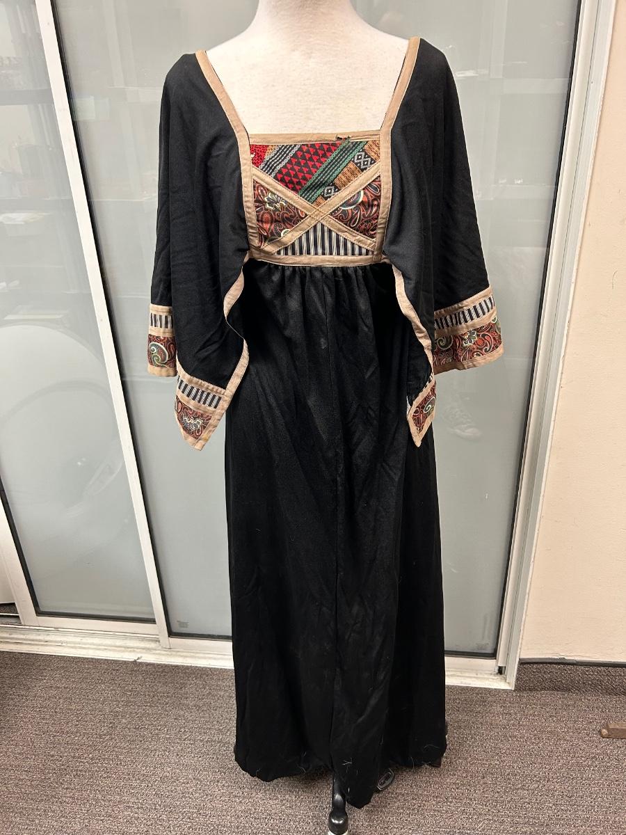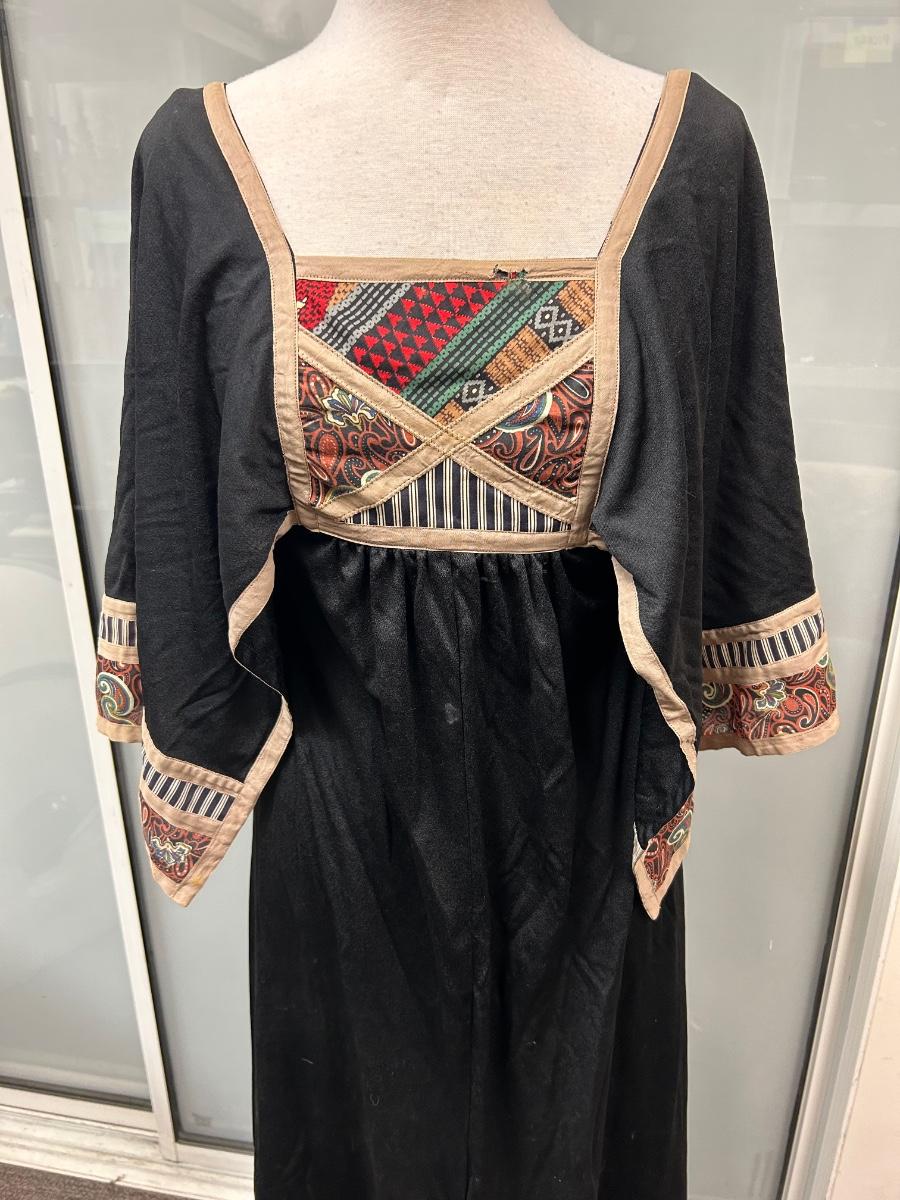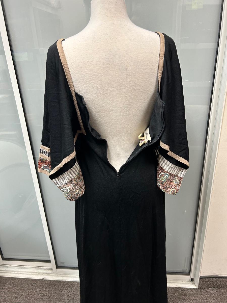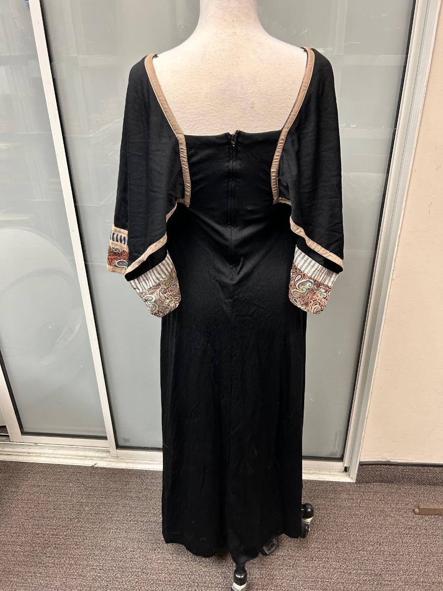 Vintage Bullock's Black Patchwork Chest Maxi Dress with Hanky Sleeves Size 6