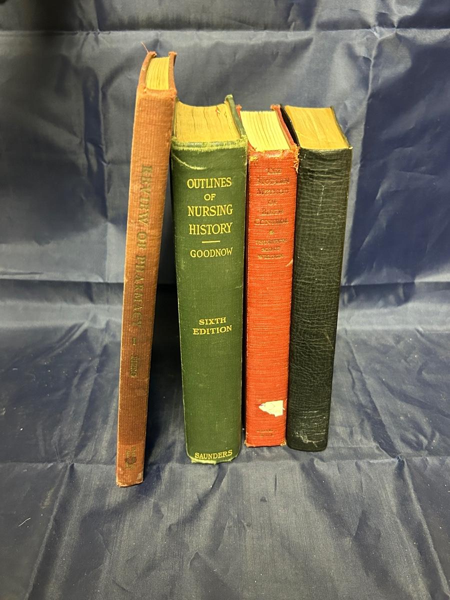Lot of 4 Antique Medical Medicine Related Books Birth Control Pharmacy Nursing. In good condition. Some wear from use and writing inside. From 1920s to 1940s.
