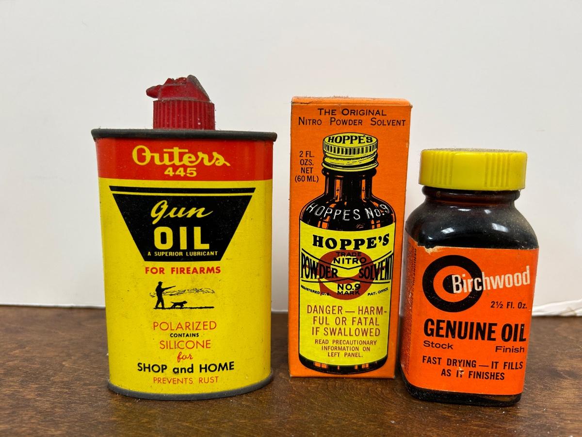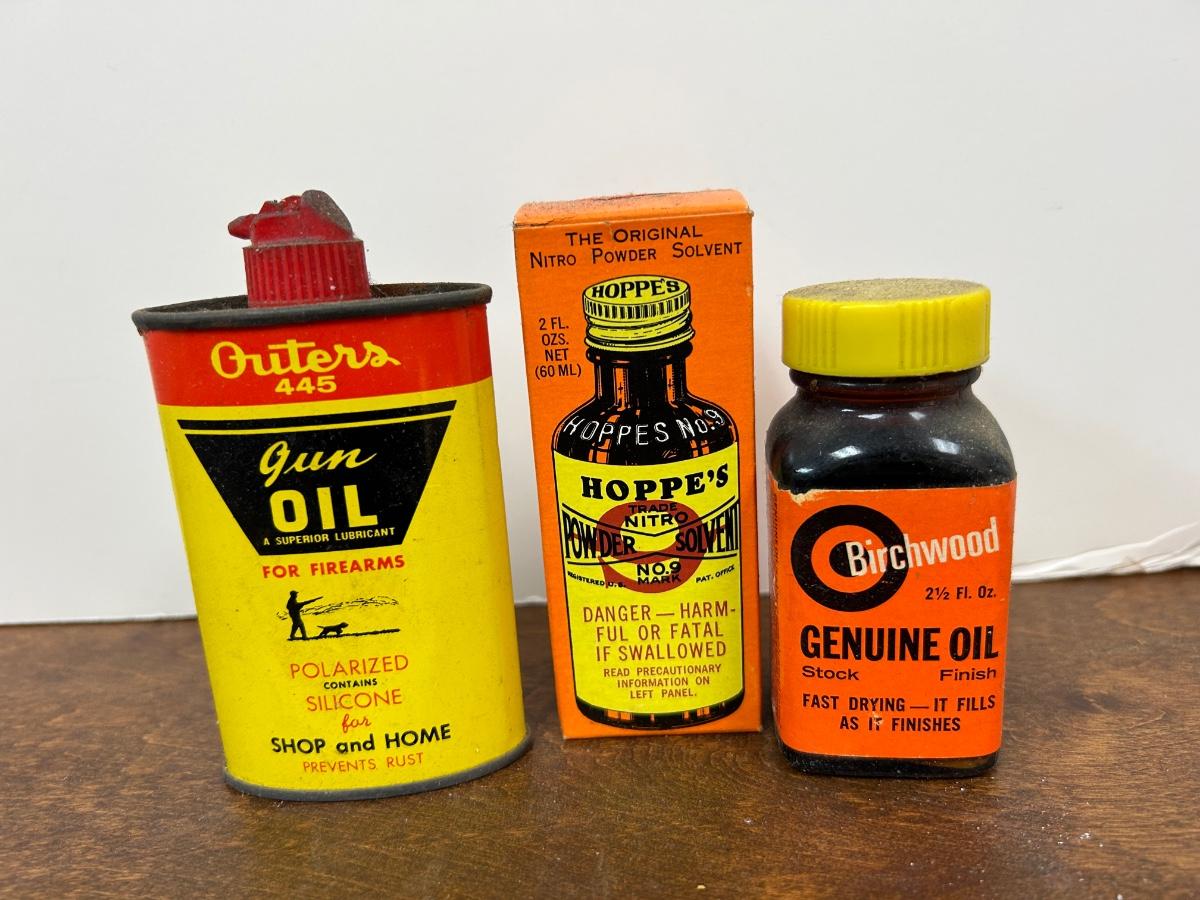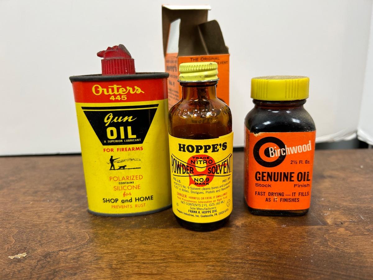Vintage Bottles of Gun Oil and Solvent Mostly Full. Bottles feel mostly full, unsure if age does anything to their usefulness.