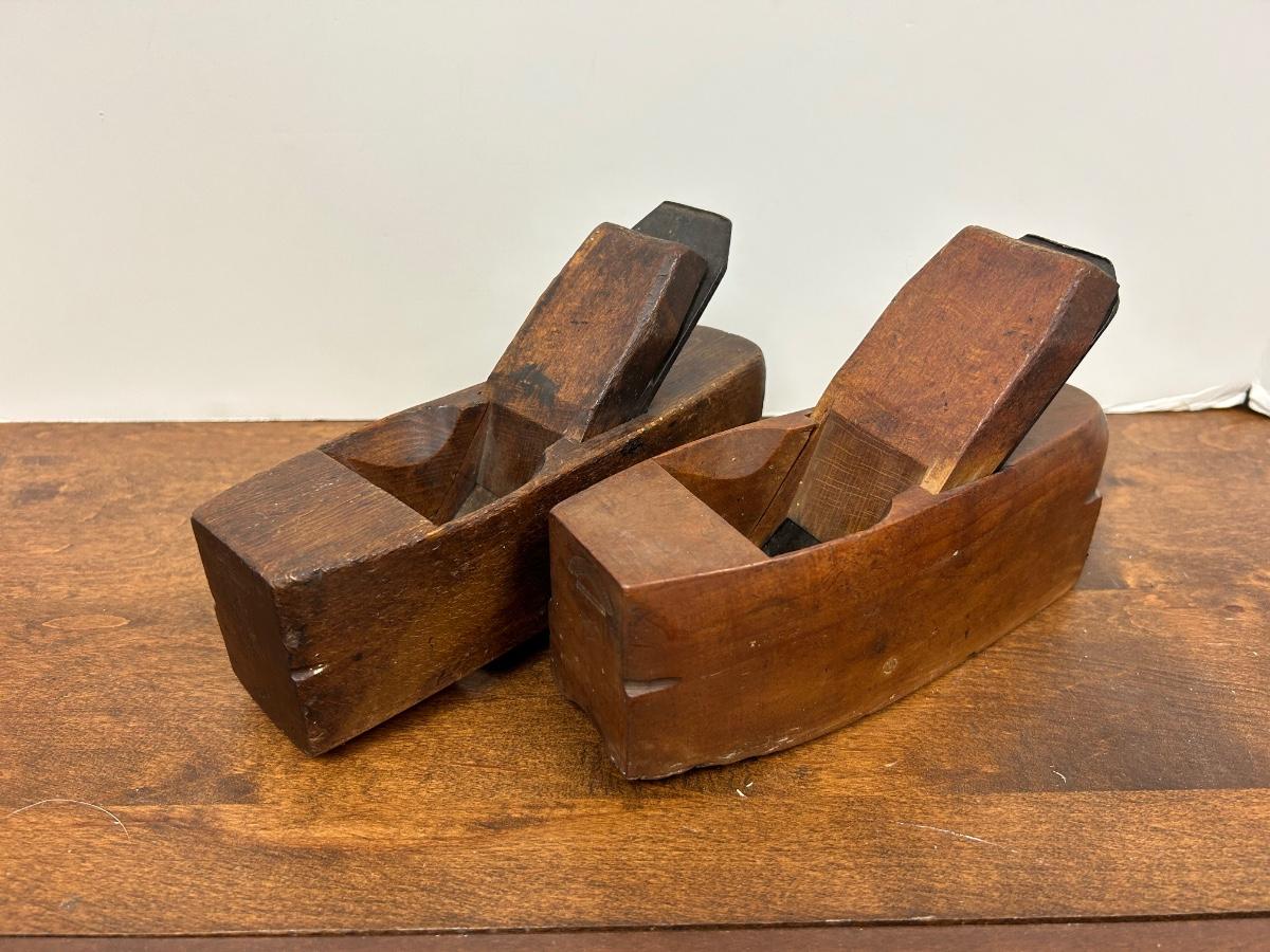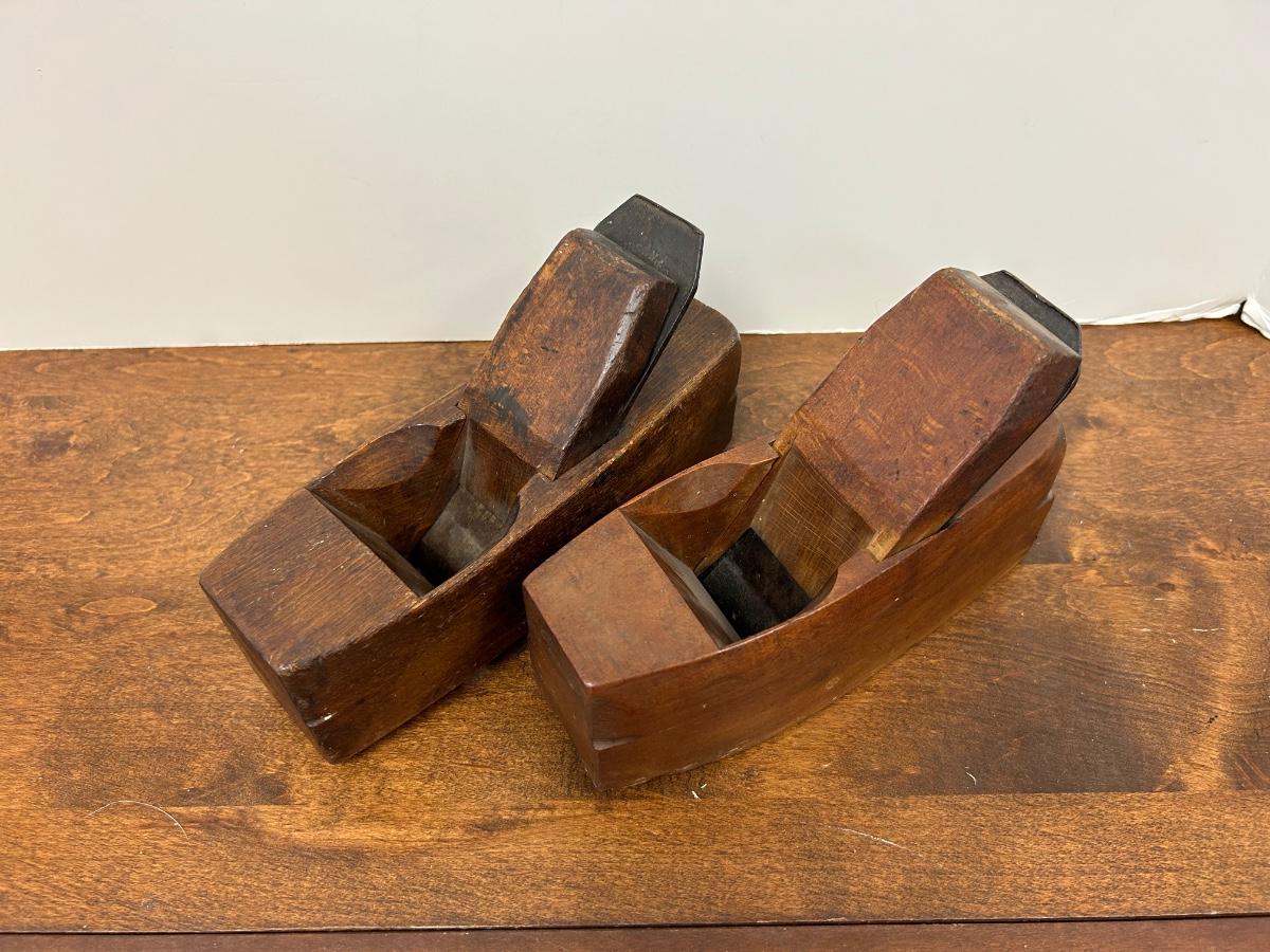 Pair of Antique Coffin Planes Concave Convex Curved. In good condition, both have blades.