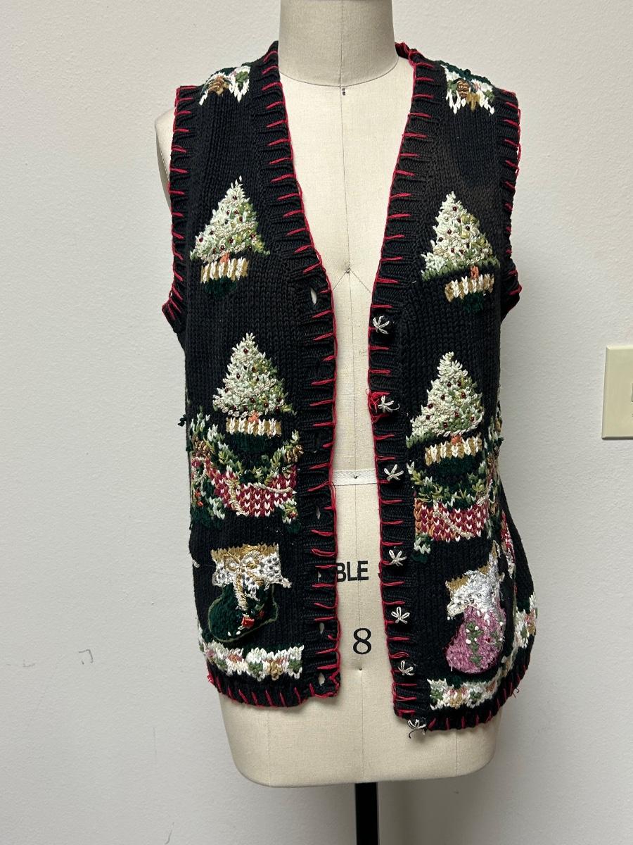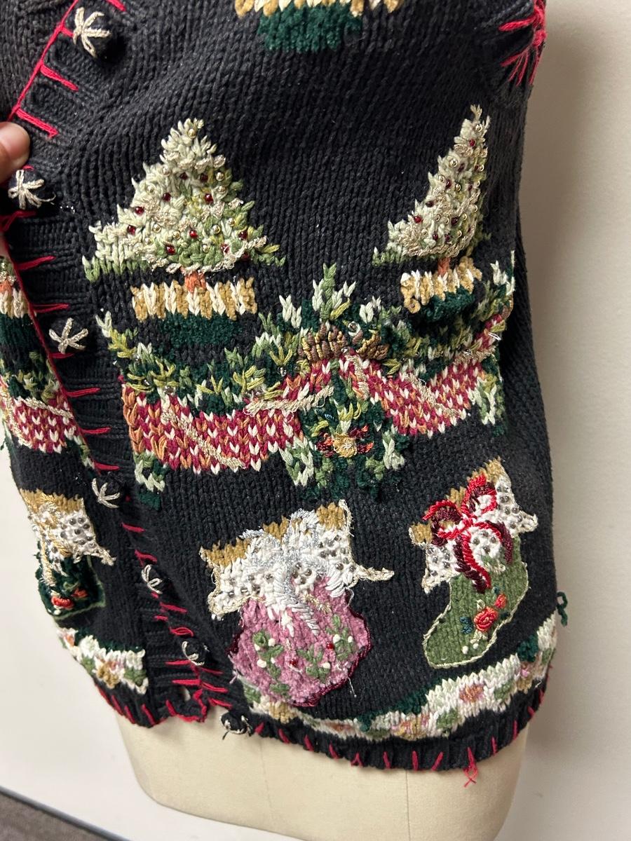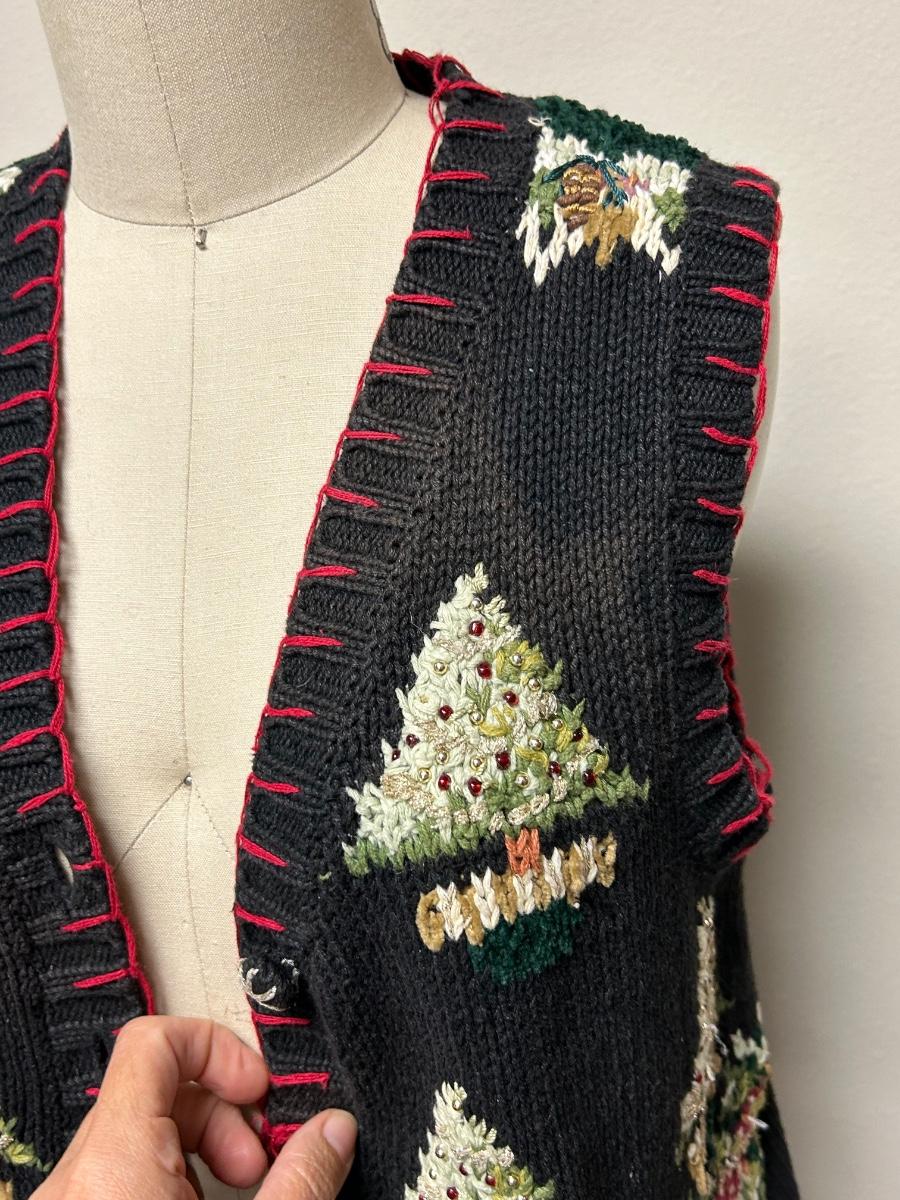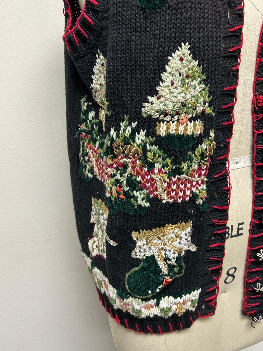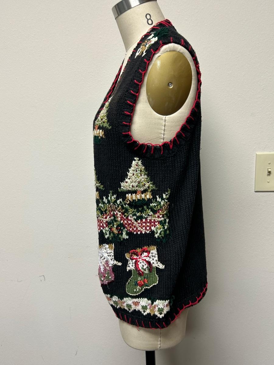 Tiara International Seasonal Holiday Ugly Christmas Sweater Vest. In previously worn condition. Does look to have a faded spot near shoulder and some snagged spots.