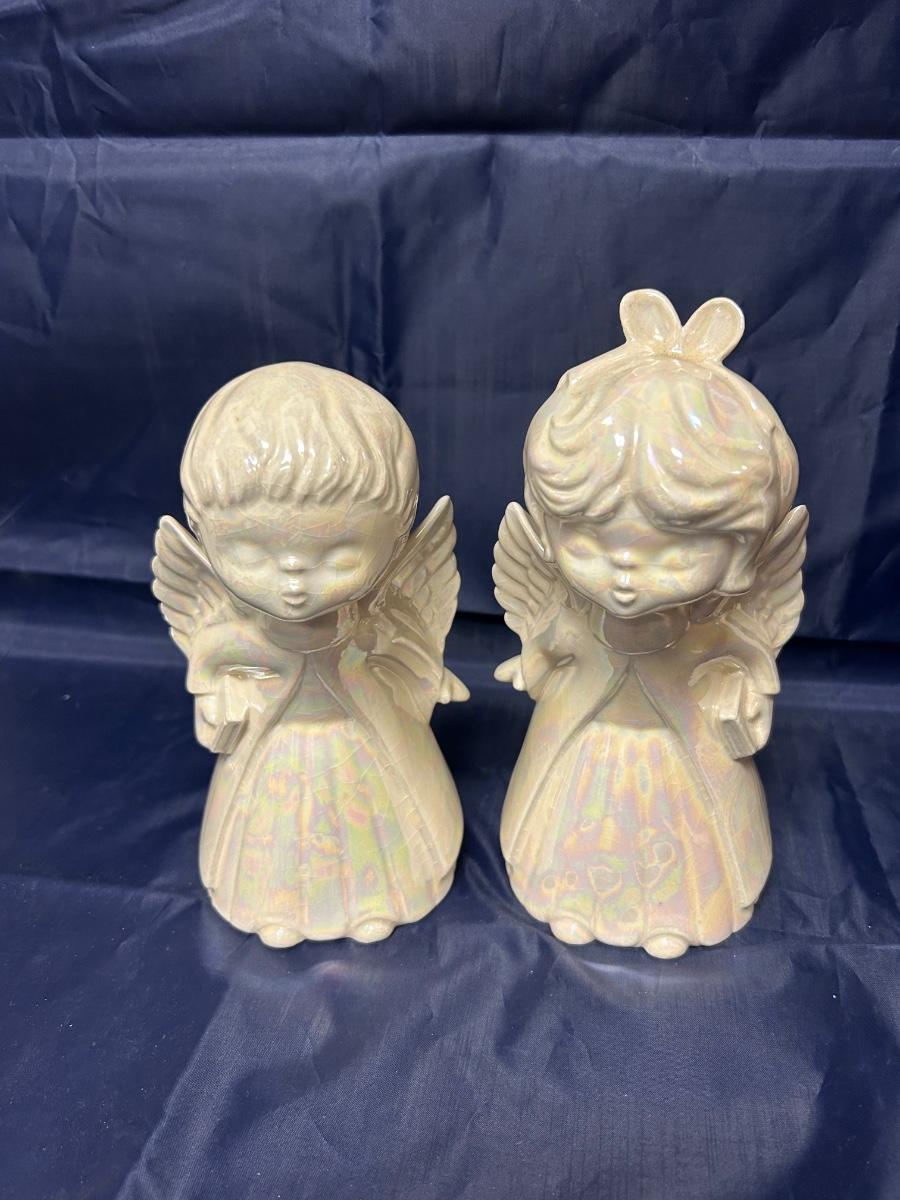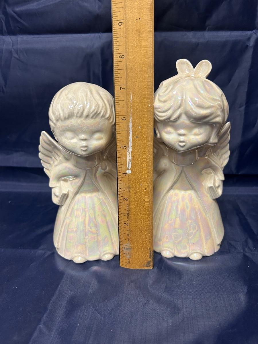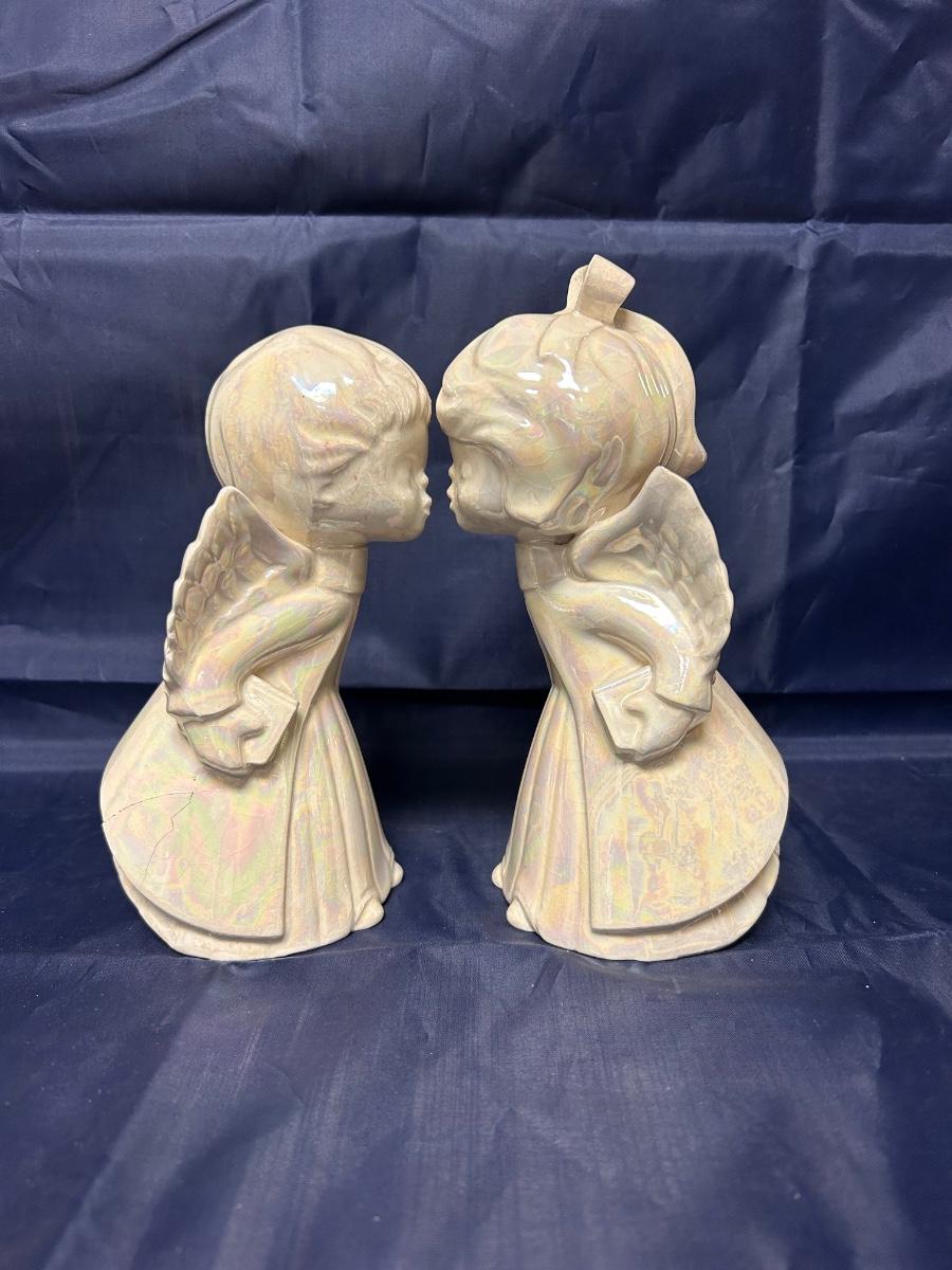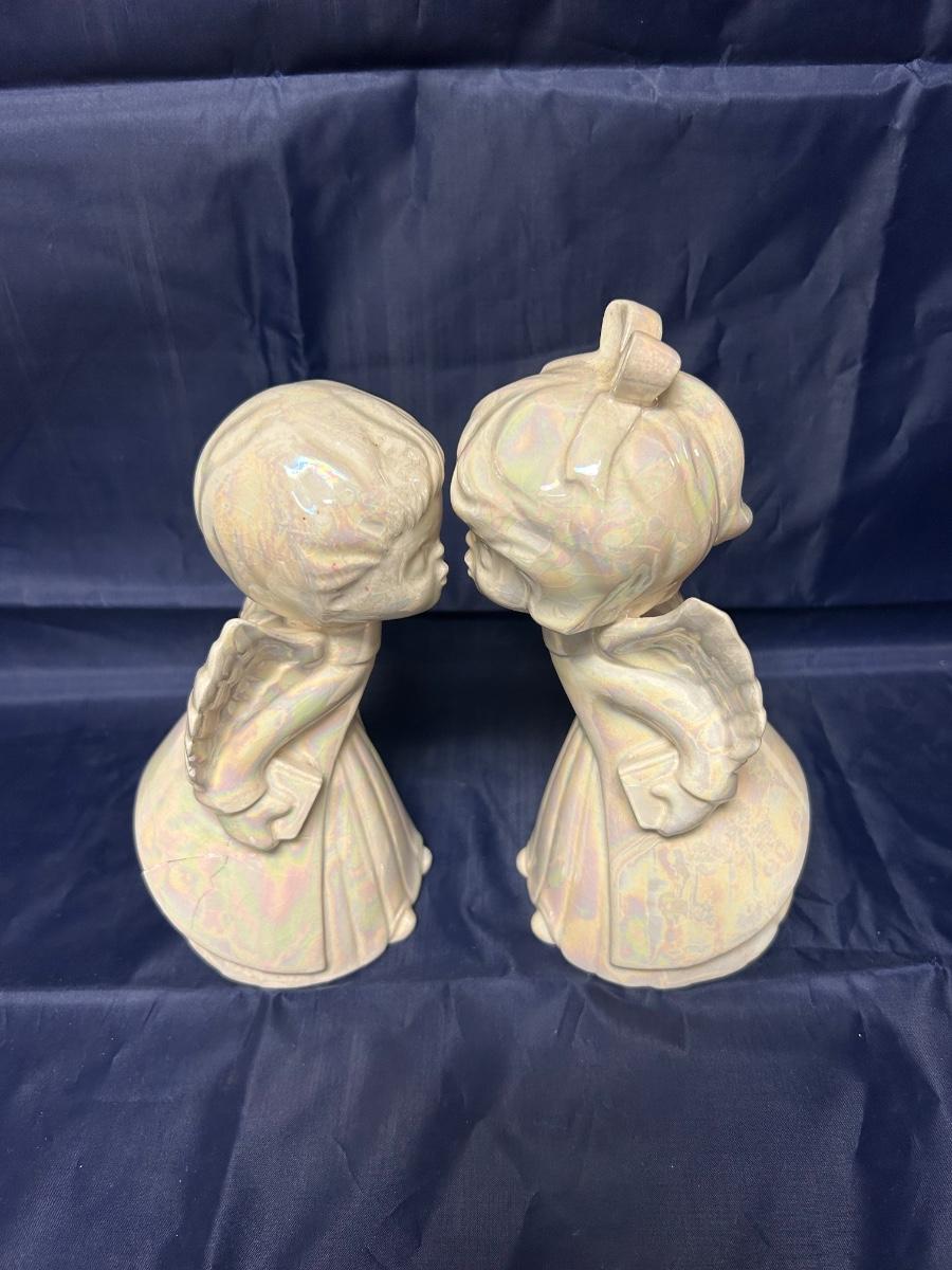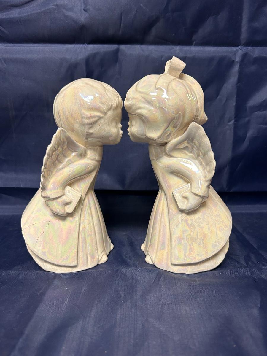 Pair of Vintage Pearlescent Kissing Angel Figurines