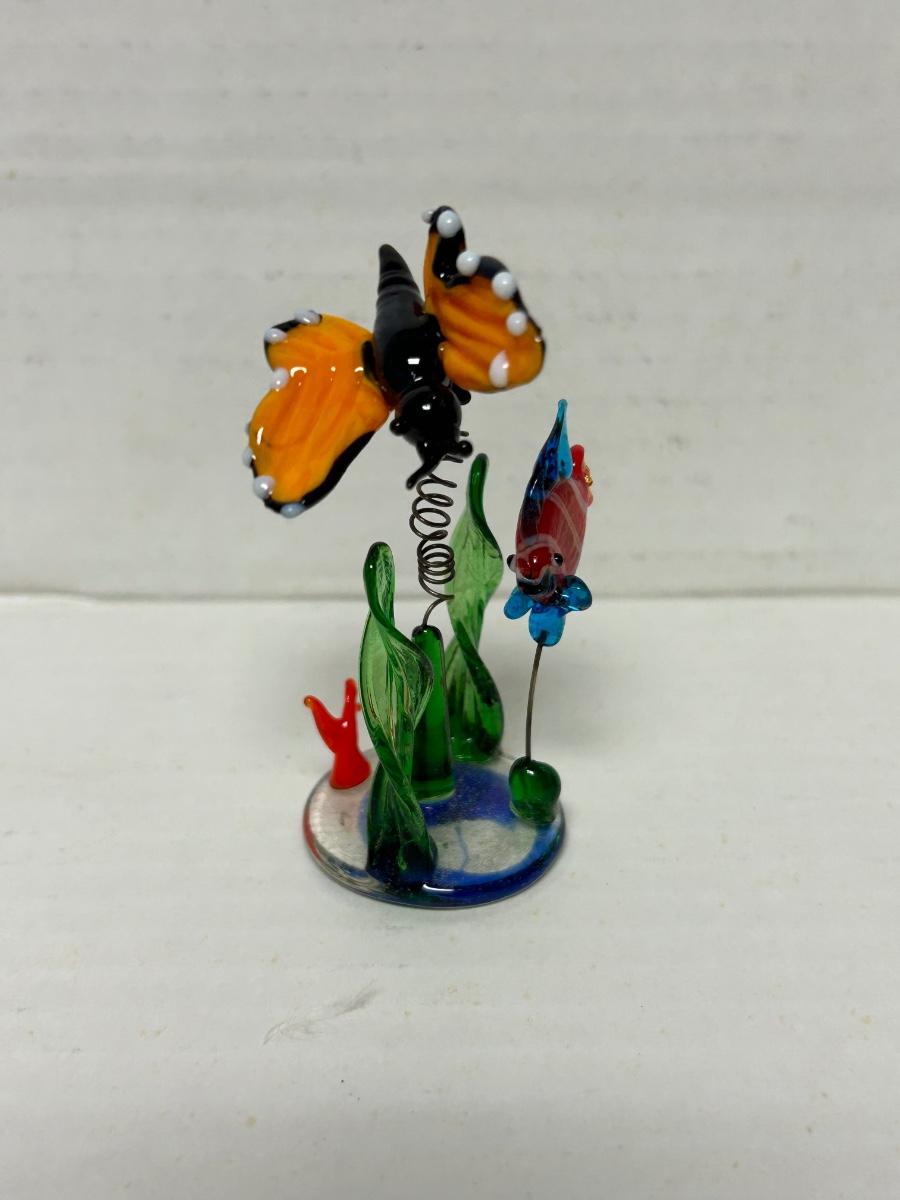 Miniature Blown Art Glass Fish and Butterfly Figurine