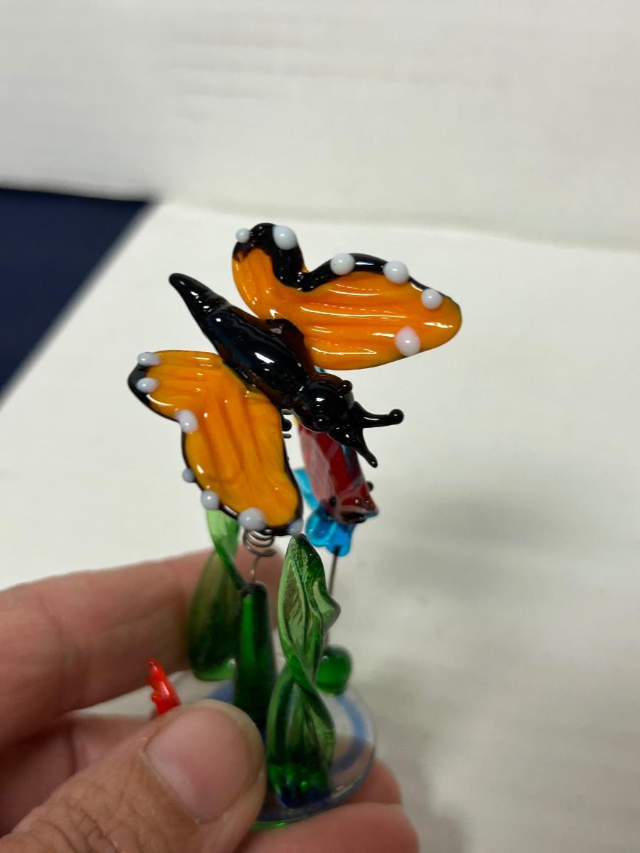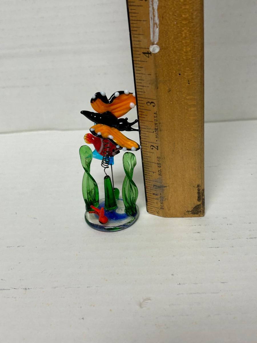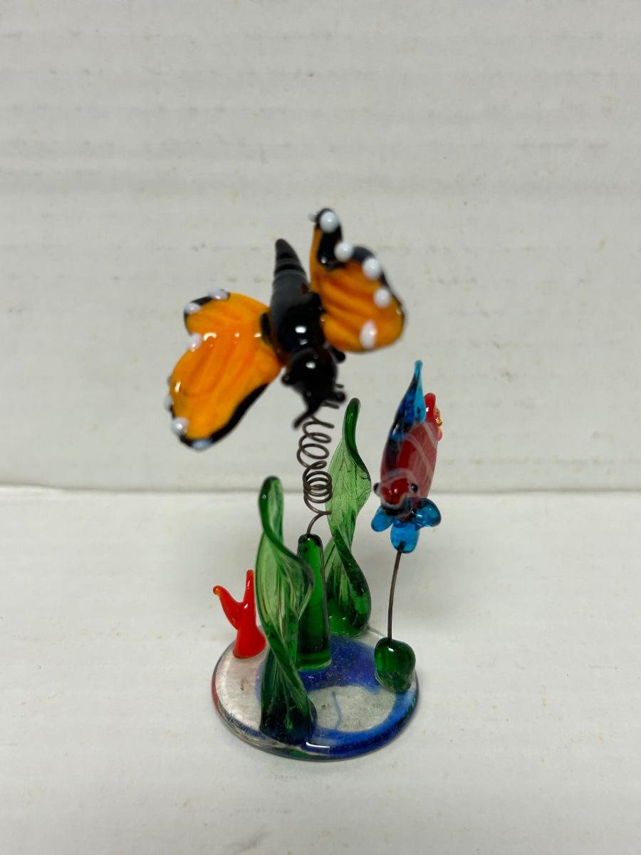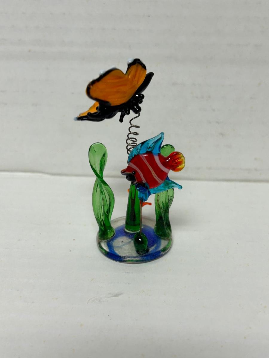 Miniature Blown Art Glass Fish and Butterfly Figurine. In good condition. Comes in original plastic box. About 3" size.