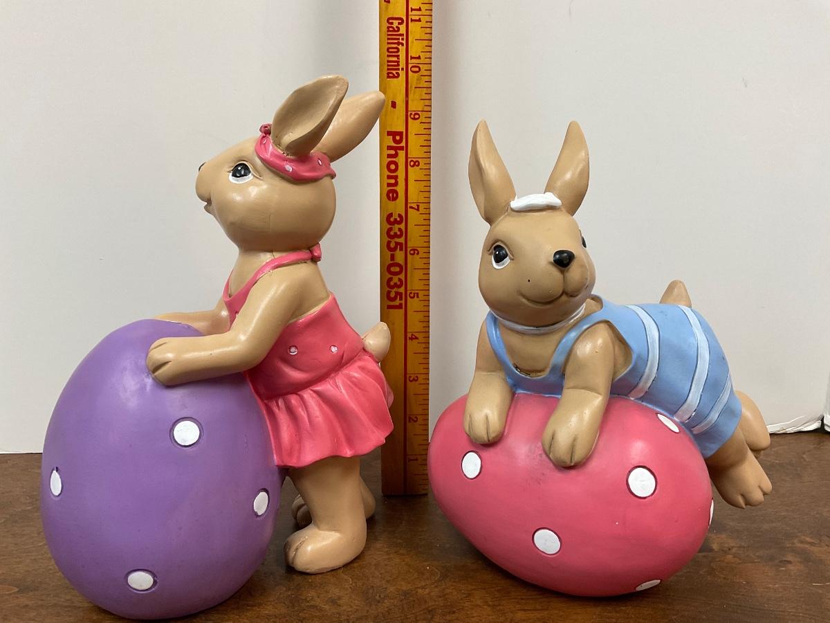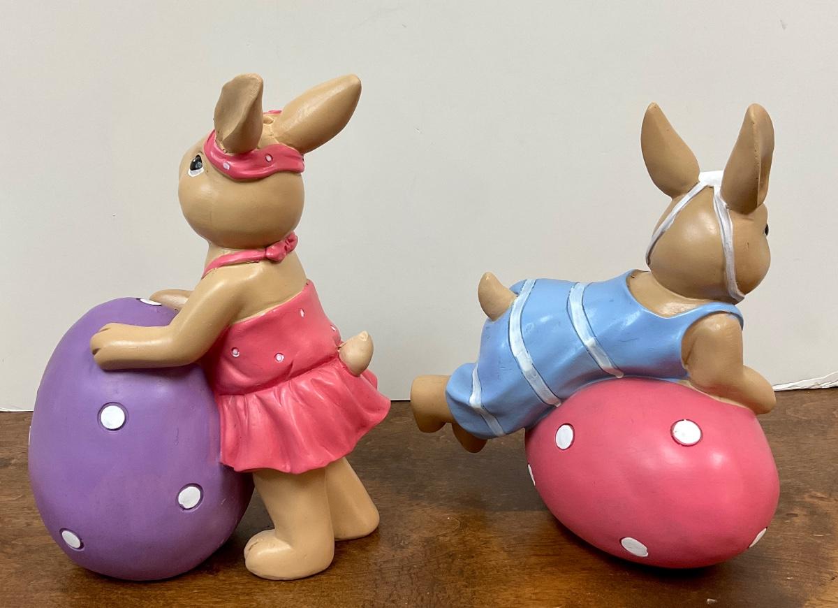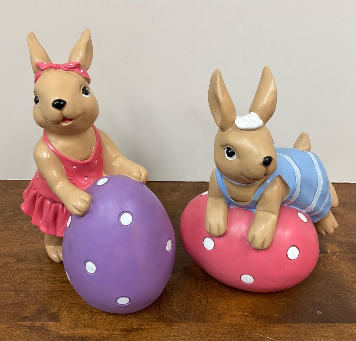 Cute Colorful Easter Egg and Bunny Rabbit Figurines. In good condition.