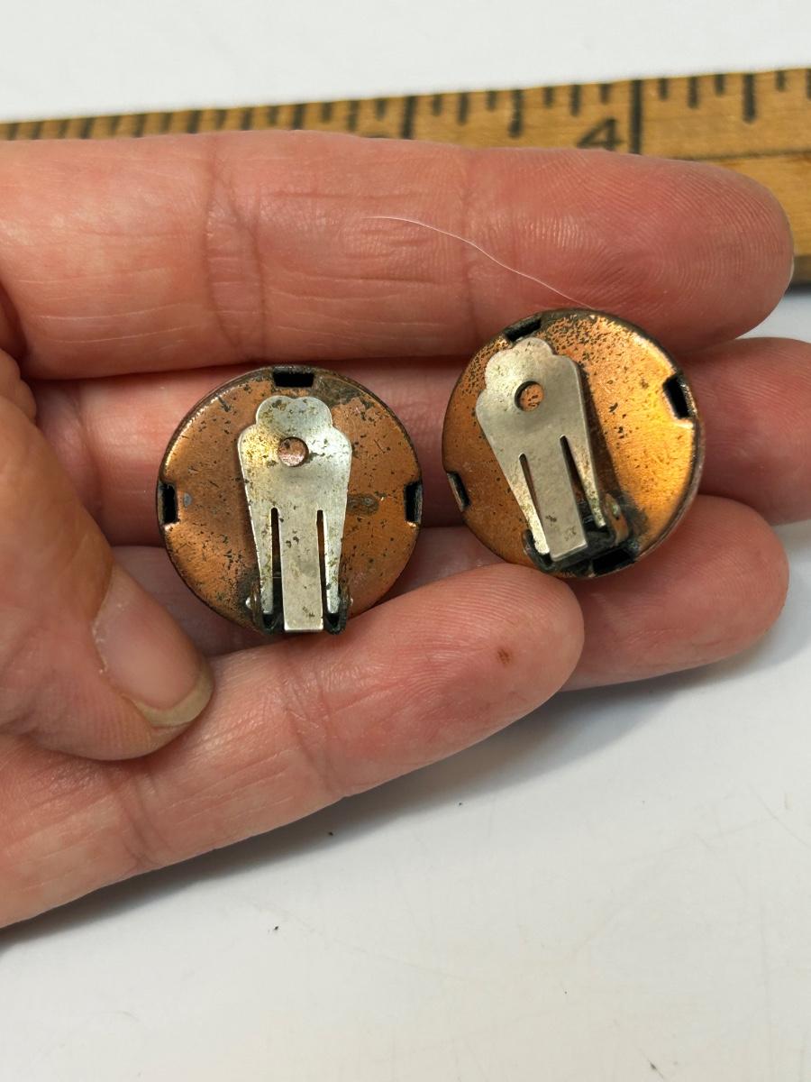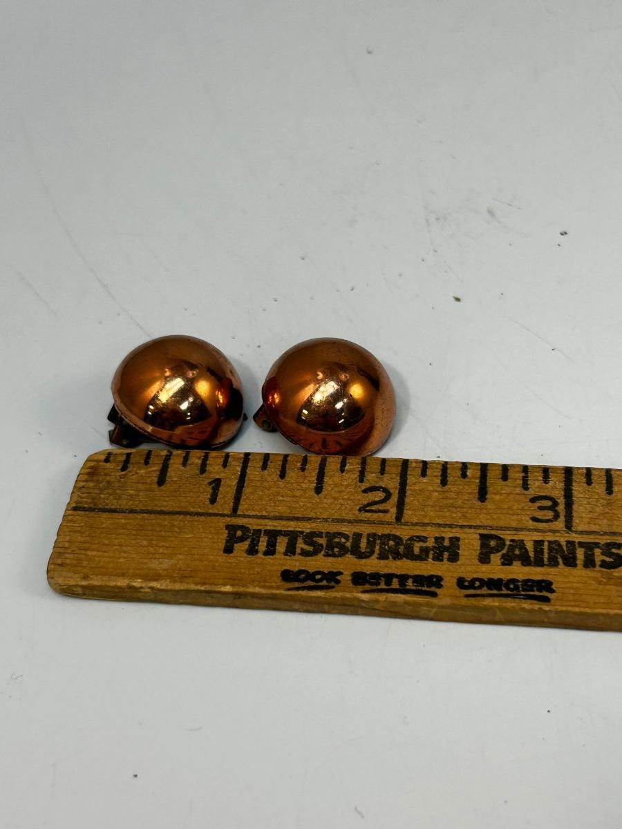 Pair of Vintage Copper Button Style Clip on Earrings. Some light signs of age but in wearable condition.